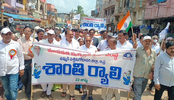 ప్రజాశక్తి-గణపవరం (పశ్చిమగోదావరి) : ప్రజలందరూ శాంతి మార్గంలో పయనిస్తూ ప్రపంచ దేశాలకు ఆదర్శం కావాలని ఉంగుటూరు శాసనసభ్యులు పుప్పాల శ్రీనివాసరావు (వాసు బాబు) అన్నారు మంగళవారం మానవత వ్యవస్థాపక దినోత్సవ సందర్భంగా గణపవరం డిగ్రీ కాలేజీ వద్ద నుండి స్థానిక పోలీస్ ఐలాండ్ వరకు నిర్వహించారు. ఈ కార్యక్రమంలో పాల్గొన్న ఎమ్మెల్యే వాసు బాబు మాట్లాడుతూ.. ప్రతి ఒక్కరు మొక్కలు నాటి పర్యావరణాన్ని పరిరక్షించాలన్నారు. ప్లాస్టిక్ వాడకం తగ్గించి దాని ద్వారా పరిసరాలను పరీక్షించుకోవాలన్నారు. ఈ సందర్భంగా విద్యార్థులతో జరిగిన శాంతి ర్యాలీలో భాగంగా మానవహారం నిర్వహించారు. ఈ కార్యక్రమంలో మానవతా నాయకులు కాకర్ల వినాయక, వంకాయల రామారావు, పాతపాటి హరికుమార్ రాజు, చేబోలు నాగేశ్వరరావు, తాడేపల్లి మోహన్రావు, గమని రాంబాబు, ఆలపాటి నాగేశ్వరరావు, బుద్ధారపు పుల్లయ్య, జలాలని ఇతర మండలాల అధ్యక్ష కార్యదర్శులు నాయకులు పాల్గొన్నారు.