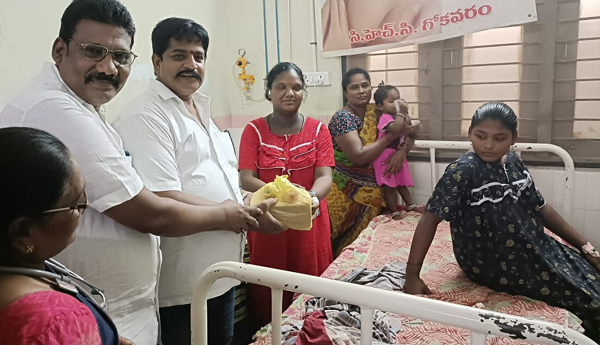 ప్రజాశక్తి-గోకవరం(తూర్పుగోదావరి) : మండల కేంద్రమైన గోకవరం ప్రభుత్వ ఆసుపత్రిలో రోగులకు పాలు, పండ్లు, రొట్టెలు పంపిణీ చేశారు. ఈ సందర్భంగా ను గోకవరం వైసిపి సీనియర్ నాయకులు సుంకర వీరబాబు మాట్లాడుతూ.. ప్రముఖ ధార్మిక వేత్త కంబాల శ్రీనివాసరావు ఆర్థిక సాయంతో ఆసుపత్రిలోని సుమారు 100 మంది రోగులకు, గర్భిణీలకు పాలు పండ్లు రొట్టెలను పంపిణీ చేసినట్లు తెలిపారు. ఈ కార్యక్రమంలో ఆసుపత్రి అభివద్ధి కమిటీ డైరెక్టర్ కర్రీ సురారెడ్డి మండల బిజెపి కార్యదర్శి ఇనకోటి బాపన్న దొర, ఆసుపత్రి వైద్యులు సిబ్బంది పాల్గొన్నారు.