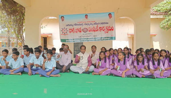 ప్రజాశక్తి - పెనుమంట్ర (పశ్చిమగోదావరి) : పౌష్టికాహారాన్ని అందించడమే జగనన్న గోరుముద్ద లక్ష్యమని ఎండిఎం జిల్లా సమన్వయకర్త కే.కృష్ణారావు అన్నారు. మంగళవారం పొలమూరు జిల్లా పరిషత్ ఉన్నత పాఠశాల, ఎంపియుపి స్కూల్ లో మధ్యాహ్న భోజన పథకాన్ని రాగి జావా పంపిణీ కార్యక్రమాన్ని , డ్రింకింగ్ వాటర్ , టాయిలెట్లను పరిశీలించారు. ఈ సందర్భంగా ఆయన మాట్లాడుతూ రాష్ట్ర ప్రభుత్వం మధ్యాహ్న భోజన పథకం అధిక ప్రాధాన్యం తీస్తుందన్నారు. పోషక విలువలతో కూడిన మెనూను రూపొందించడమే కాకుండా , వారానికి ఐదు రోజులు కోడి గుడ్డు, 3 రోజులు చిక్కి మరో మూడు రోజులు రాగిజావ పంపిణీ కార్యక్రమం నిర్వహిస్తుందన్నారు. ఈ కార్యక్రమంలో ప్రధానోపాధ్యాయులు బండి ఆంజనేయులు, సిఆర్పి కుక్కల మంగతాయారు, దొంగ సత్యనారాయణ , ఎస్ఎంసి చైర్మన్ దుర్గాప్రసాద్, ఉపాధ్యాయిని, ఉపాధ్యాయులు పాఠశాల సిబ్బంది పాల్గొన్నారు.