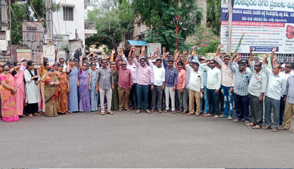 ప్రజాశక్తి-అనంతపురం కార్పొరేషన్ : ఏడు రోజులుగా అనంతపురం మున్సిపల్ ఆఫీస్ ఎదుట ఇంజనీరింగ్ కార్మికులు సమస్యల పరిష్కారించానలి ఆందోళన చేస్తున్న మున్సిపల్ అధికారులు పట్టించుకోకపోవడం దారుణమనిఏపీ మున్సిపల్ వర్కర్స్ అండ్ ఎంప్లాయిస్ ఫెడరేషన్ రాష్ట్ర అధ్యక్షులు కే నాగభూషణం అన్నారు. బుధవారం మున్సిపల్ ఆఫీస్ ముందర నల్ల బ్యాడ్జీలు కళ్ళకు గంతలు కట్టుకొని, నిరసన వ్యక్తం చేశారు. ఈ సందర్భంగా సిఐటియు నాయకులు మాట్లాడుతూ.. ఏడు రోజులుగా మున్సిపల్ ఆఫీస్ ముందర ఇంజనీరింగ్ కార్మికుల తమ సమస్యలు పరిష్కారం చేయాలని రాష్ట్ర ప్రభుత్వాన్ని,మున్సిపల్ అధికారులకు, తమ ఆవేదన వ్యక్తం చేస్తుంటే, అటు రాష్ట్ర ప్రభుత్వం గానీ, ఇటు మునిసిపల్ ఆఫీస్ అధికారులు గానీ పట్టించుకోకపోవడం దారుణమన్నారు. ఇంజనీరింగ్ కార్మిక సమస్యలపై రాష్ట్రవ్యాప్తంగా 20,21వ తారీఖున జరగబోయే రిలే నిరాహార దీక్షలో చేపడుతున్నట్లు తెలిపారు. రాష్ట్ర ప్రభుత్వం ఇచ్చిన హామీలను అమలు చేయాలని, మున్సిపల్ కార్మికులందరినీ పర్మినెంట్ చేయాలని, సమాన పనికి సమాన వేతనంఇవ్వాలని, 010 జీవో ప్రకారంగా వేతనాలు ఇవ్వాలని, ఇంజనీరింగ్ కార్మికులకు స్కిల్డ్ స్కిమీ స్కిల్డ్ అమలు చేయాలని, రాష్ట్ర ప్రభుత్వం ప్రవేశపెట్టిన సంక్షేమ పథకాలు ఇంజనీరింగ్ కార్మికులకు వర్తింపజేయాలని, 60 సంవత్సరాల రిటైర్మెంట్ పేరుతో తొలగించిన 12 మంది కార్మికుల కుటుంబాల్లో ఒకరు ఉపాధి కల్పించాలని,2011 సంవత్సరంలో ఇంజనీరింగ్ కార్మికులకు బకాయి ఉన్న 11 నెలల పిఎఫ్ వారి ఖాతాలో జమ చేయాలని డిమాండ్ చేశారు. లేని పక్షాన మున్సిపల్ కార్మికులు, పారిశుద్ధ్యం, ఇంజనీరింగ్ సెక్షన్ కార్మికులు, ఈనెల 27వ తారీఖున మున్సిపల్ ఆఫీస్ ని ముట్టడి చేస్తామని, అలాగే ఆగస్టు ఏడో తారీఖున, అనంతపురం జిల్లా మున్సిపల్ కార్మికులు అందరూ, కదం తొక్కుతూ కలెక్టర్ ఆఫీస్ దగ్గర ఆందోళన చేపడతారని, అప్పటికి ఈ రాష్ట్ర ప్రభుత్వం స్పందించకుంటే ఆగస్టు 17న చలో విజయవాడకు పిలుపునిస్తామని హెచ్చరించారు. ఆరోజు నుంచే, సమ్మె బాట పడతామని తెలిపారు. ఈ కార్యక్రమంలో సిఐటియు నగర కార్యదర్శి వై వెంకటనారాయణ, మున్సిపల్ వర్కర్స్ యూనియన్ జిల్లా అధ్యక్షులు ఏటీఎం నాగరాజు, నగర కార్యదర్శి తిరుమలేష్, మురళి, రాయుడు, ఓబుల పత్తి, సూరి, సురేష్, సుధారాణి, లక్ష్మీదేవి, పోతలయ్య, మళ్లీ, ఇంజనీరింగ్ కార్మికులు పాల్గొన్నారు.