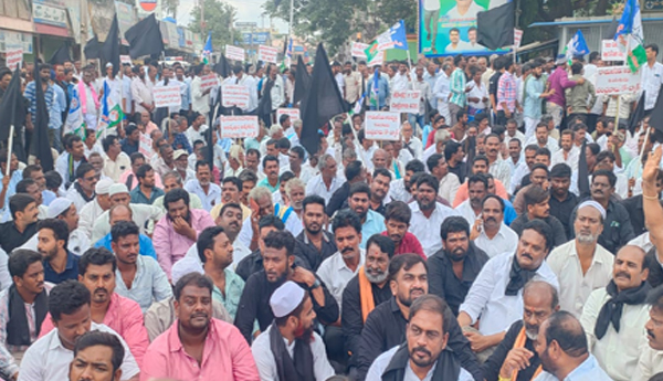 ప్రజాశక్తి-పుంగనూరు (చిత్తూరు) : తెలుగుదేశం పార్టీ జాతీయ అధ్యక్షుడు, మాజీ ముఖ్యమంత్రి చంద్రబాబు నాయుడు పర్యటన రోడ్ షో పర్యటన లో భాగంగా ... పుంగనూరులో శుక్రవారం ఉద్రిక్తత ఏర్పడింది. నియోజకవర్గంలోని 6 మండలాల నుండి వైసీపీ నాయకులు, కార్యకర్తలు పుంగనూరుకు చేరుకున్నారు. స్థానిక ఇందిరా సర్కిల్లో వైసిపి నాయకులు, కార్యకర్తలు నల్లజెండాలు చేత పట్టుకుని ' చంద్రబాబు గో బ్యాక్ '... సాగు నీరు, తాగునీరు అడ్డుకున్న చంద్రబాబు 420 అంటూ... నినదించారు. ఇందిరా సర్కిల్లో నిరసన అనంతరం ప్రైవేటు బస్టాండ్ ఎన్టీఆర్ సర్కిల్ మీదుగా అంబేద్కర్ సర్కిల్ వద్దకు చేరుకొని ధర్నా కార్యక్రమం నిర్వహించారు. ఉద్రిక్తత నేపథ్యంలో... ఈరోజు ఉదయం నుండి పట్టణంలో పోలీసులు భారీగా మోహరించారు.