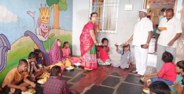 పేదవారి ఆకలి తీర్చే దిశగా శ్రీరామ సాయిబాబా వెల్ఫేర్ సొసైటీ కందుకూరు వారి అన్నదాత సుఖీభవ కార్యక్రమంలో భాగంగా శనివారం గుర్రం సింగయ్య గుప్తా,నిర్మలాదేవి వివాహ వార్షికోత్సవం సందర్భంగా కందుకూరు పట్టణం కోవూరు రోడ్డులో ఉన్న స్వర్ణ స్వయంకషి మానసిక వికలాంగుల ఆశ్రమంలో పిల్లలకు మధ్యాహ్న భోజనం ఏర్పాటు చేశారు. గుర్రం సింగయ్య గుప్తా,నిర్మలాదేవి ఉన్నారు.