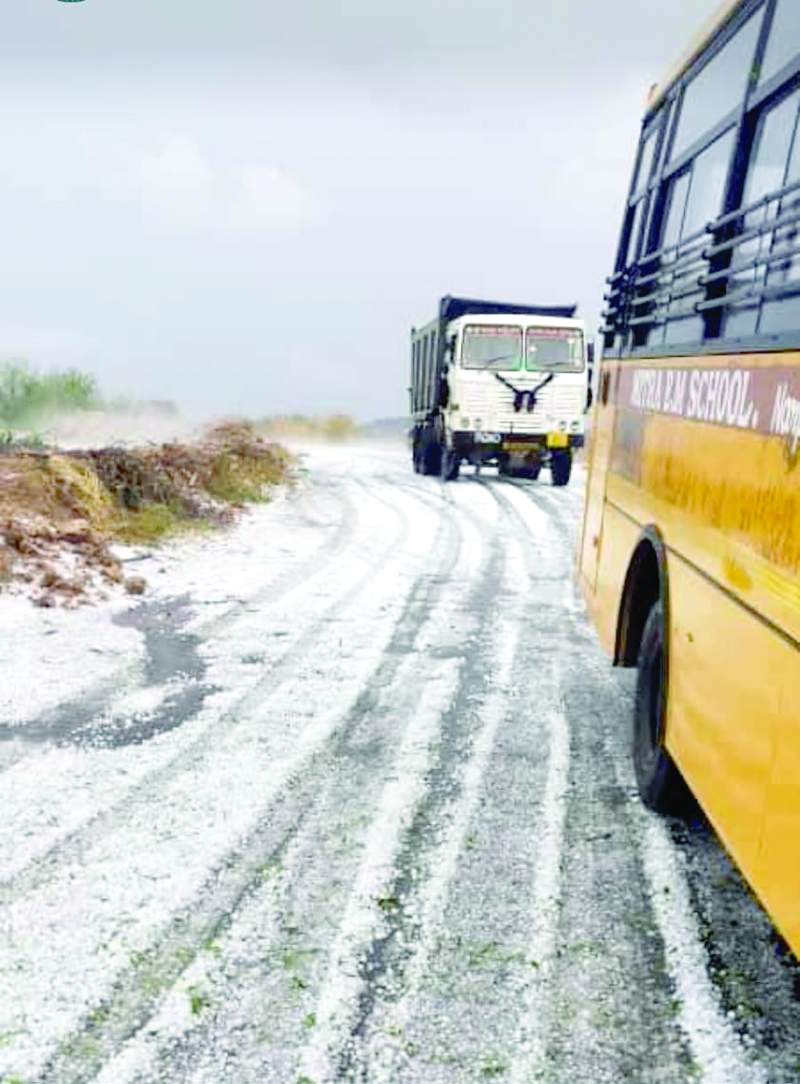 శింగనమల మండలం నాయనపల్లి క్రాస్ వద్ద అనంతపురం-తాడిపత్రి జాతీయ రహదారిపై రోడ్డుపై పడిన వడగండ్లు