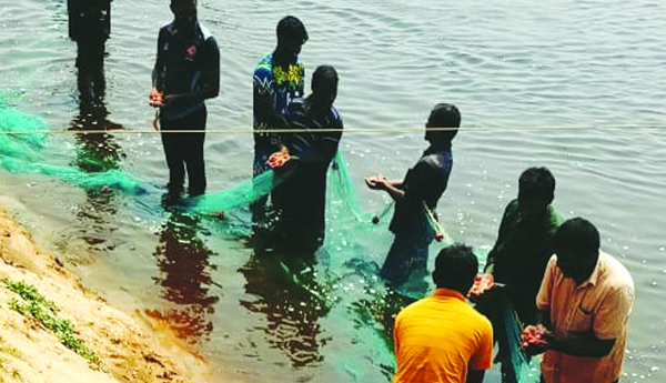 చనిపోయిన రొయ్యలను తీస్తున్న దృశ్యం