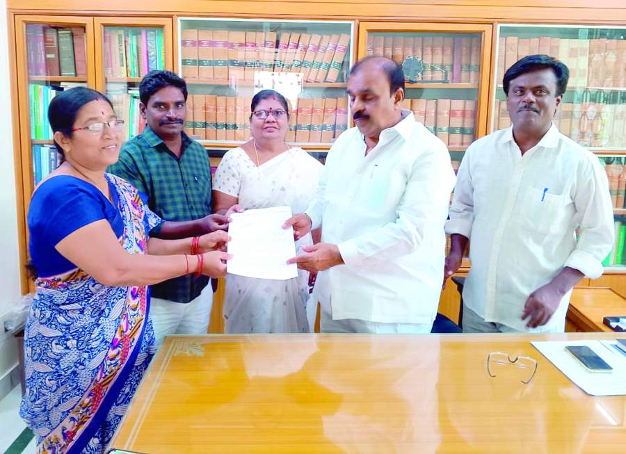 ఎమ్మెల్యేకు వినతిపత్రం సమర్పిస్తున్న సిఐటియు నాయకులు