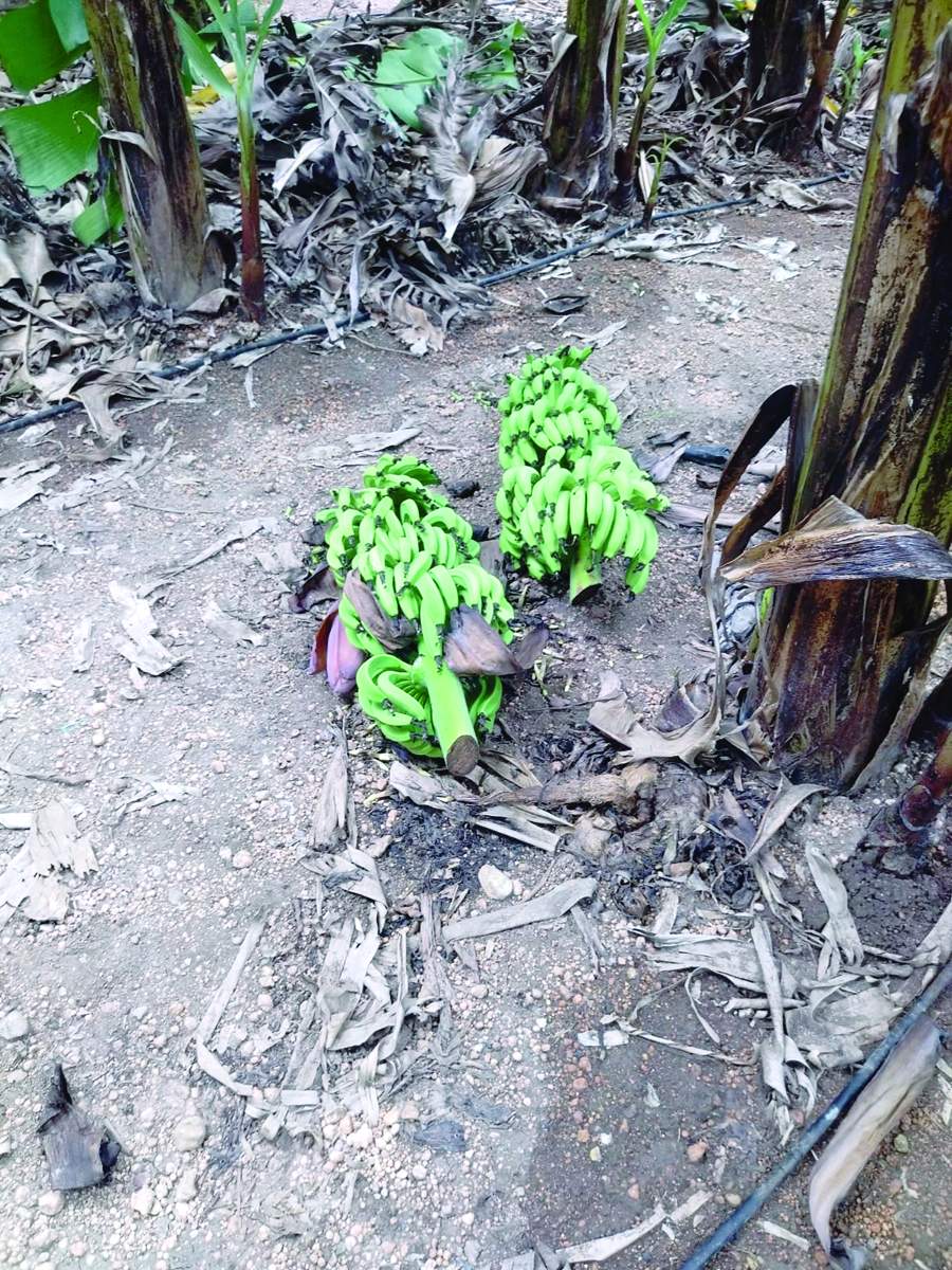 దుండగులు నరికిన అరటిగెలలు