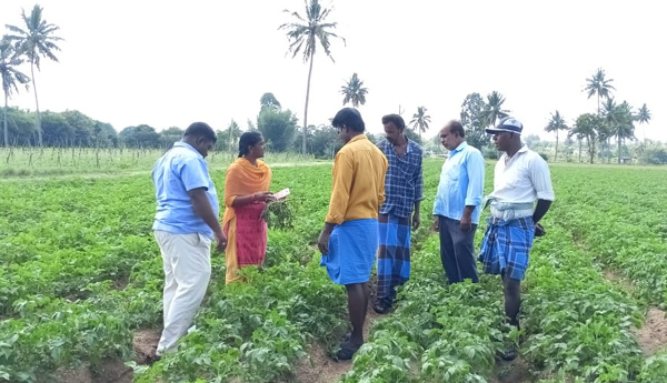 ప్రజాశక్తి-వీ.కోట : మండలంలో బంగాళాదుంప సాగు చేస్తున్న రైతులకు స్థానిక ఉద్యాన అధికారి లక్ష్మీ ప్రసూన క్షేత్రస్థాయిలో పరిశీలించి రైతులకు పలు సూచనలు మెలుకు వలుతెలియజేశారు. బుధవారం మండలంలోని కరిప్పల్లి పెద్దబరినెపల్లి గ్రామాలలో సాగు చేస్తున్న బంగాళాదుంప పంటను పరిశీలించారు. ప్రస్తుత వాతావరణ పరిస్థితుల దృష్ట్యా బంగాళాదుంపలో చేపట్టవలసిన సస్యరక్షణపై రైతులకు అవగాహన కల్పించారు.బంగాళాదుంప పంటలో ఆకుమాడు తెగులును గుర్తించి దానికి నివారణ పద్ధతులను రైతులకు వివరించారు. ఈ తెగులు ఆశించినప్పుడు మొదటగా మొక్కలపై పసుపు రంగు తరువాత గోధుమ రంగు మచ్చలు ఏర్పడి క్రమేనా మొక్కలు ఎండిపోతాయన్నారు. ఈ తెగులు కొమ్మలు దుంపలను కూడా ఆశించి పంట నష్టం కలిగిస్తుందని చల్లటి వాతావరణం ఉన్నప్పుడు పగటివేళ్లలో తెల్లటి శిలీంద్రం ఆకుల అడుగుభాగాన కనబడుతుందని తెలిపారు.