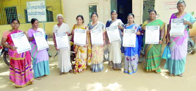 'చలో విజయవాడ' పోస్టర్లను విడదుల చేస్తున్న సిఐటియు నాయకురాళ్లు