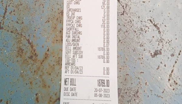 ప్రజాశక్తి-గణపవరం : మండలంలో ముప్పర్తిపాడు గ్రామానికి చెందినపిఎంపి డాక్టర్ వీరా సత్యనారాయణకు జూలై నెల విద్యుత్ బిల్లు 18769 రుపాయలురావటంతొ షాక్.కి గురైనట్లుబుదవారం చెప్పారు. ప్రతి నెల 500 మించి వచ్చేది కాదని చెప్పారు. తన ఇంటికి ఏసి కూడలేదని.సాదరణ వాడకం దారుడనని తనకి18.వేలకు పైగా రావటం పట్ల ఆయన ఆందళనకు గరి అయినట్లు తెలిపారు. బిల్లు సరిచేయాలని అదికారుల దగ్గరకు వెళ్ళనా.అదికారులు అందుబాటులో లేరని చెప్పారువిద్యుత్.బిల్లునిసరిచేయకపోతేతాను ఇబ్బందలుపడతాన నిఆవేదన వ్వక్తం చేసారు