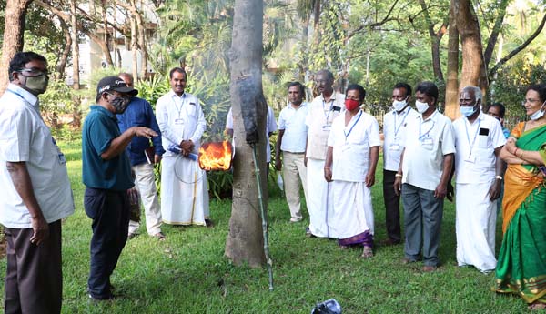 తిరుమల అటవీ ప్రాంతంలో ఇటీవల ఏనుగులు సంచరించిన నేపథ్యంలో టీటీడీ అటవీశాఖ అధికారులు, మేస్త్రీలకు శ్వేతలో శనివారం ప్రత్యేక శిక్షణ ఇప్పించారు. హిమాచల్ ప్రదేశ్కు చెందిన ప్రఖ్యాత ఏనుగుల మనస్తత్వ శాస్త్రవేత్త డాక్టర్ రుద్ర ఆదిత్య ఈ శిక్షణ ఇచ్చారు. ఉదయం నుంచి మధ్యాహ్నం వరకు థియరీ గురించి వివరించి కొన్ని వీడియోలు చూపించారు. సాయంత్రం శ్వేత ప్రాంగణంలోని పార్కులో క్షేత్రస్థాయి అవగాహన కార్యక్రమం నిర్వహించారు. ఏనుగులు జనావాసంలోకి వచ్చినప్పుడు గట్టిగా అరవడం, రాళ్ళతో కొట్టడం లాంటివి చేయకూడదన్నారు. పచ్చి వెదురు బొంగుకు గన్నీ బ్యాగ్, ఎండు మిరపకాయలు ఒక క్రమపద్ధతిలో చుట్టి మంటపెట్టి కొంతసేపటి తరువాత పొగవచ్చేలా చేసే ప్రక్రియ చేసి చూపించారు. ఇలాంటి వాటిని ప్రతి 10 మీటర్లకు ఒకటి చొప్పున ఏర్పాటు చేస్తే ఆ వాసనకు ఏనుగులు వెనక్కు వెళ్ళి పోతాయని చెప్పారు. వర్షాలు కురుస్తుంటే చెట్టుకు ఒక డబ్బా కట్టి అందులో పిడకలు, ఎండు మిరపకాయలు వేసి మంట పెట్టినా ఏనుగులు ఆ వాసనకు ముందుకు రాలేవని చూపించారు. తెలుపు, ఎరుపు రంగులు ఏనుగులకు ఆగ్రహం తెప్పిస్తాయని అందువల్లే అడవుల్లో పని చేసేవారు, సందర్శకులు ఈ రంగు వస్త్రాలు ధరించరాదన్నారు. అడవుల్లో ఉండే వారు ఆకుపచ్చ రంగు వస్త్రాలు వేసుకోవడం శ్రేయస్కరమని డాక్టర్ రుద్ర ఆదిత్య తెలిపారు. ఏనుగు వెంటపడేటప్పుడు చెట్టు ఎక్కరాదని, ఒకే దశలో కాకుండా జిగ్జాగ్గా పరుగెత్తాలన్నారు. ఏనుగు ఎదురు పడినప్పుడు భయంతో కేకలు వేయకుండా తెలివిగా తప్పించుకునే మార్గం చూడాలని చెప్పారు. వీటితో పాటు ఏనుగులు ఏ సమయంలో, ఏ వాతావరణంలో, ఎలాంటి మనస్తత్వంతో ఉంటాయి, వాటిని ఎలా డీల్ చేయాలనే విషయాలపై శిక్షణ ఇచ్చారు. ఈ కార్యక్రమంలో ఇంచార్జ్ డిఎఫ్ఓ, శ్వేత డైరెక్టర్ ప్రశాంతి, రేంజ్ ఆఫీసర్లు ప్రభాకర్ రెడ్డి, వెంకట సుబ్బయ్య, రఘురామిరెడ్డి, వివేకానంద తదితరులు పాల్గొన్నారు.