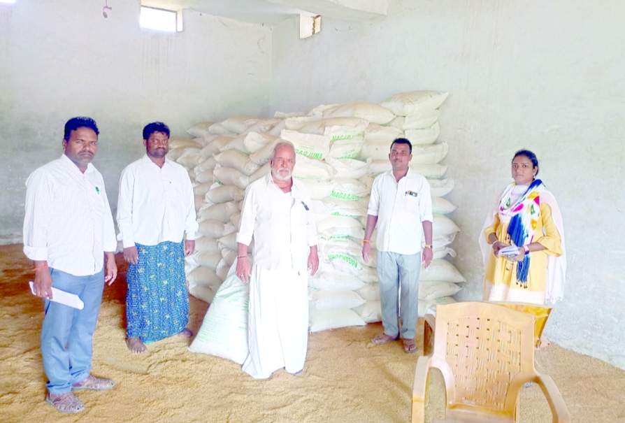 విత్తనకాయలను పరిశీలిస్తున్న నాయకులు, అధికారులు