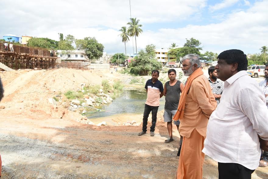 మండల కేంద్రమైన సదుం వద్ద గార్గేయ నదిపై నూతనంగా రూ.6 కోట్ల నిధులతో నిర్మిస్తున్న వంతెన నిర్మాణ పనులను మంత్రి పెద్దిరెడ్డి రామచంద్రారెడ్డి గురువారం పరిశీలించారు. ఈ సందర్భంగా ఆయన మాట్లాడుతూ భారీవర్షాల కారణంగా బ్రిటిష్ కాలంనాటి వంతెన కొట్టుకుపోవడంతో నూతన వంతెన నిర్మాణ పనులకోసం నిధులు కేటాయించి పనులను వేగవంతంగా చేస్తున్నామన్నారు. అత్యాధునిక సాంకేతిక పరిజ్ఞానంతో వంతెన నిర్మాణ పనులను వేగవంతంగా పూర్తి చేస్తున్నామని అన్నారు. ఈ కార్యక్రమంలో స్థానిక ప్రజాప్రతినిధులు పోలీస్ సిబ్బంది పాల్గొన్నారు.