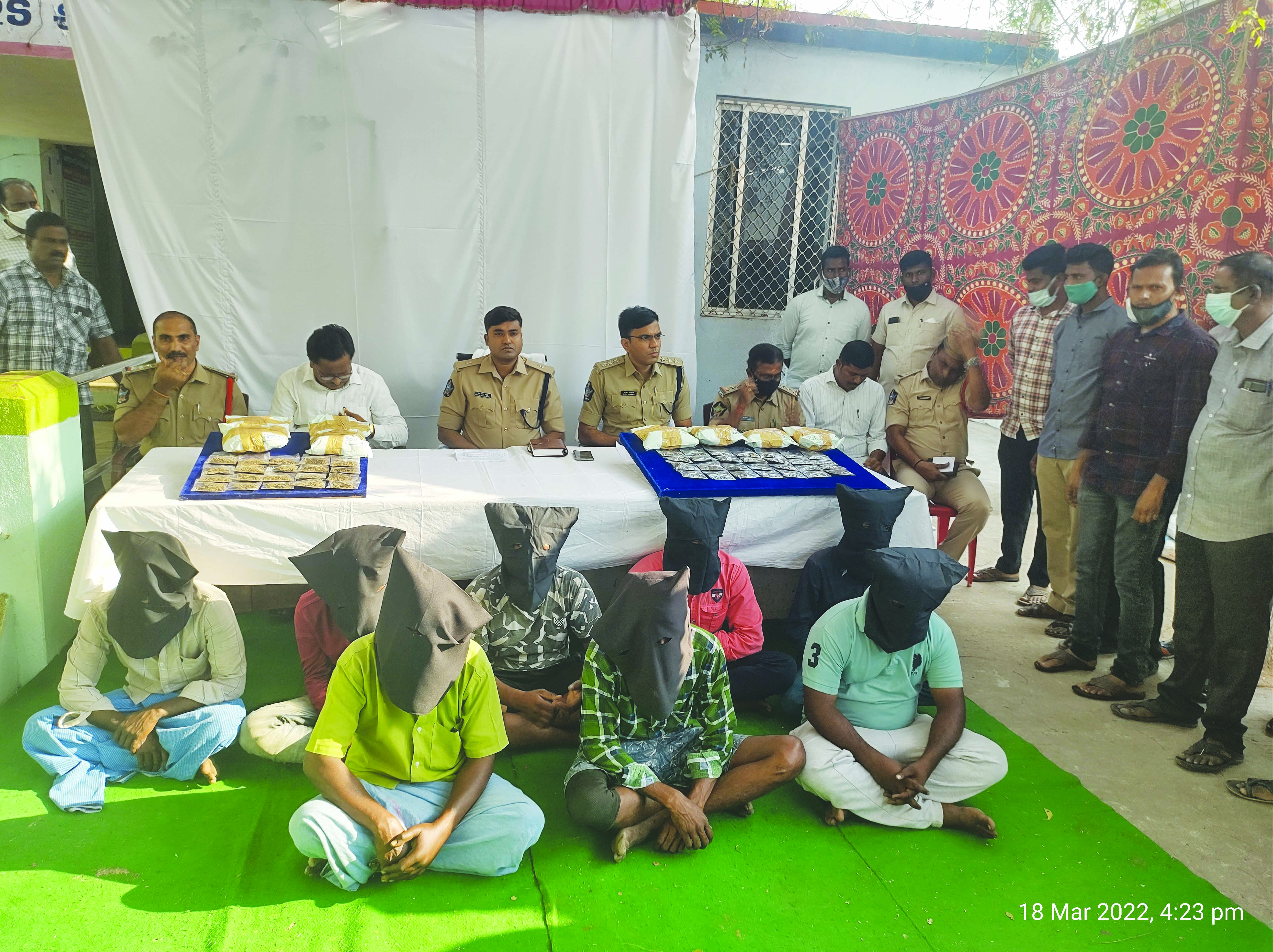 గంజాయి మాఫియాను అరికట్టాడాకి జిల్లా ఎస్పి సెంథిల్ కుమార్ ఉత్తర్వుల మేరకు గత నెల నుండి మాదకద్రవ్యాలపై నిఘా వేసి వేశామని సెబ్ జేడి విద్యాసాగర్ నాయుడు అన్నారు. విక్రయానికి ఉంచిన 2 కేజీల 800 గ్రాములు, దాదాపుగా 90 లక్షలు విలువ గల గంజాయిని స్వాధీనం చేసుకున్నామని అధికారులు తెలిపారు. అరెస్ట్ అయిన చిన్నబాబు ఒజికుప్పం, మహేష్ నగిరి, మూర్తి గెట్ పుత్తూరు, దీప ఓజికుప్పం, ఎస్ఎస్ చిట్టి ఓజి కుప్పం, రమణ ఓజికుప్పం, పి.తిరుమల ఓజికుప్పం, ఎమ్. ఆనంద్ కేఎన్రోడ్ పుత్తూరు, జి.షణ్ముగం గెట్పుత్తూరు, జి.సాయికుమార్ వడమాలపేట మండలంకు చెందిన వీరిని పుత్తూరు వెంకట పెరుమాల్ ఇంజనీరింగ్ కాలేజ్ కళాశాల, పుత్తూరు ఎస్ఆర్ఎస్ ప్రభుత్వం డిగ్రీ కళాశాల గ్రౌండ్ సమీపంలో అనుమానంగా కనబడడంతో విచారించగా గుట్టురట్టైందని పోలీసులు తెలిపారు. గంజాయితో యువత భవిష్యత్తు ప్రశ్నార్ధకంగా మారుతోందని తల్లిదండ్రులు పిల్లలపై నిఘా పెట్టాలన్నారు. గంజాయి ముద్దాయిలను రిమాండ్కు తరలించినట్టుగా పోలీసులు తెలిపారు. అనంతరం పోలీసు సిబ్బందికి రివార్డులు ప్రకటించి వారికందించారు. పుత్తూరు సీఐ వెంకట్రామిరెడ్డి రెడ్డి, ఎస్ఐ వెంకటేశ్వర్లు, వివిధ మండలాల సిఐలు, ఎస్ఐలు పాల్గొన్నారు.