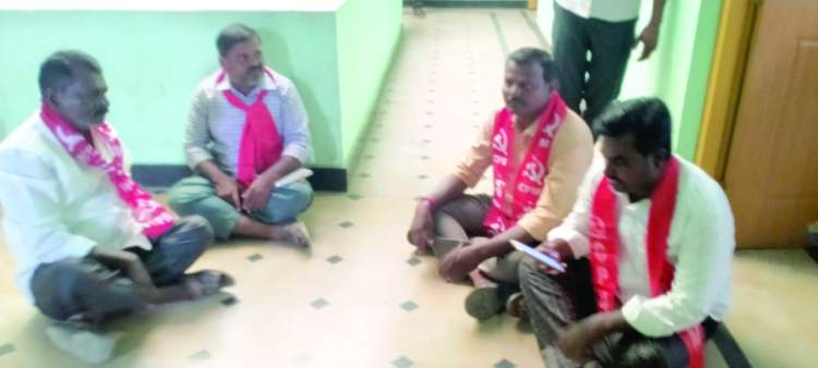 కింద కూర్చొని నిరసన తెలుపుతున్న సిపిఎం నాయకులు