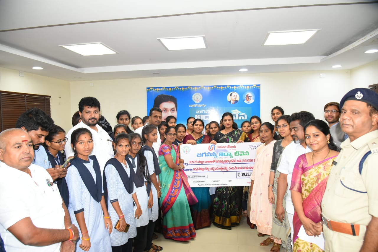 అనంతపురం కలెక్టరేట్ : జిల్లాలో జగనన్న విద్యా దీవెన పథకం కింద 35,056 మంది విద్యార్థులకు సంబంధించి 31,576మంది తల్లుల ఖాతాలకు రూ. 29.25 కోట్లను జమ చేసినట్లు కలెక్టర్ ఎమ్.గౌతమి తెలిపారు. అనంతపురం కలెక్టరేట్లోని వీడియో కాన్ఫరెన్స్హాల్లో నిర్వహించిన జిల్లా స్థాయి విద్యాదీవెన పంపిణీ కార్యక్రమంలో కలెక్టర్తో పాటు జెడ్పీ ఛైర్పర్సన్ బోయ గిరిజమ్మ తదితరులు పాల్గొన్నారు. ఈ సందర్భంగా కలెక్టర్ మాట్లాడుతూ, జిల్లాలో ''జగనన్న విద్యా దీవెన పథకం'' కింద 35,056 మంది విద్యార్థులకు సంబంధించి 31,576మంది తల్లుల ఖాతాలకు రూ.29.25 కోట్ల జమ చేశామన్నారు.కాలేజీ ఫీజులు గతంలో నేరుగా మేనేజ్మెంట్ ఖాతాలకు జమ అయ్యేవని, ప్రస్తుత ప్రభుత్వం తల్లుల ఖాతాల్లో జమ చేస్తోందన్నారు. విద్యా దీవెన, వసతి దీవెన లాంటి పథకాలను ఉపయోగించుకుని తల్లిదండ్రులు పిల్లలను ఉన్నత చదువులు చదివించాలన్నారు. జెడ్పీ ఛైర్పర్సన్ బోయ గిరిజమ్మ మాట్లాడుతూ యువత కనే కలల సాకారంలో జగనన్న ఎప్పటికీ అండగా ఉంటారన్నారు. అనంతరం జగనన్న విద్యా దీవెన పథకం మెగా చెక్కును విద్యార్థులకు అందజేశారు. ఈ కార్యక్రమంలో ట్రైనీ కలెక్టర్ కుశల్ జైన్, మేయర్ వసీం, డిప్యూటీ మేయర్ వాసంతి సాహిత్య, అడిషనల్ ఎస్పీ హనుమంతు, ఏడీసీసీ బ్యాంకు ఛైర్పర్సన్ లిఖిత, ఆర్టీసీ రీజనల్ ఛైర్పర్సన్ మంజుల, సీడబ్ల్యూసీ ఛైర్ పర్సన్ మేడా రామలక్ష్మి, వక్ఫ్ బోర్డు ఛక్ష్మిర్ పర్సన్ రిజ్వాన్, కార్పొరేటర్ సైఫుల్లా, సాంఘిక సంక్షేమ శాఖ డీడీ విశ్వమోహన్ రెడ్డి, జిల్లా గిరిజన సంక్షేమ అధికారి అన్నా దొర, జిల్లా బీసీ సంక్షేమ అధికారి ఖుష్బు కొఠారి, జిల్లా మైనారిటీ సంక్షేమ అధికారి ఎస్ఎమ్ డి.రఫీ పాల్గొన్నారు.