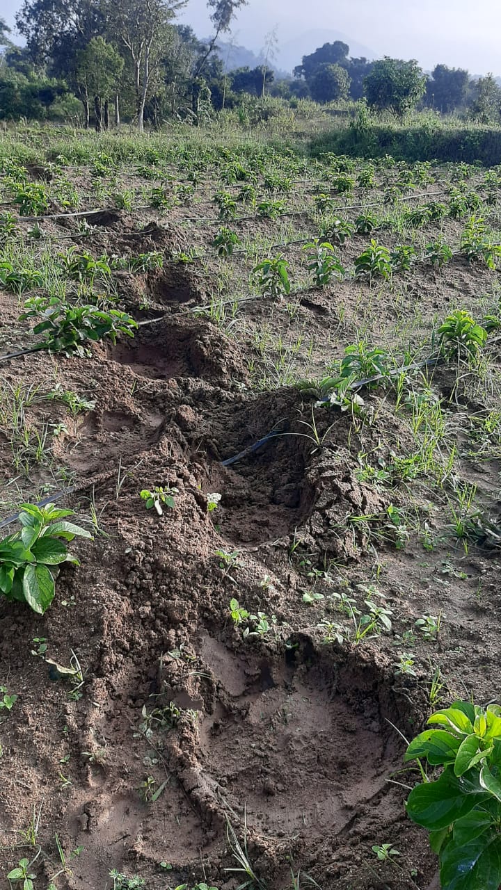 ప్రజాశక్తి- సోమల: పేటూరు సమీపంలోని ఓ రైతు పంట పొలంలో బుధవారం రాత్రి జంట ఏనుగులు తిరిగి మారేడు గడ్డల మొలకలు, బిందు సేద్యం పైపులను పూర్తిగా తొక్కేశాయి. రైతు రామచంద్ర మాట్లాడుతూ టమోటా, వరి ఇతర పంటలు వేసి ఏనుగుల బారి నుండి కాపాడుకునేందుకు సాధ్యం కాకపోవడంతో మారేడు గడ్డలను సాగు చేస్తున్నానని.. రూ.2 లక్షల ఖర్చు చేశానని ఏనుగులు ధ్వంసం చేయడంతో పూర్తిగా నష్టపోయానని ఆవేదన వ్యక్తం చేస్తున్నాడు. అటవీశాఖ అధికారులకు సమాచారమిస్తే నిర్లక్ష్య సమాధానం ఇస్తున్నారని వాపోయారు. ఏనుగుల కట్టడికి ఇకనైనా చర్యలు తీసుకోవాలని రైతులు కోరుతున్నారు.