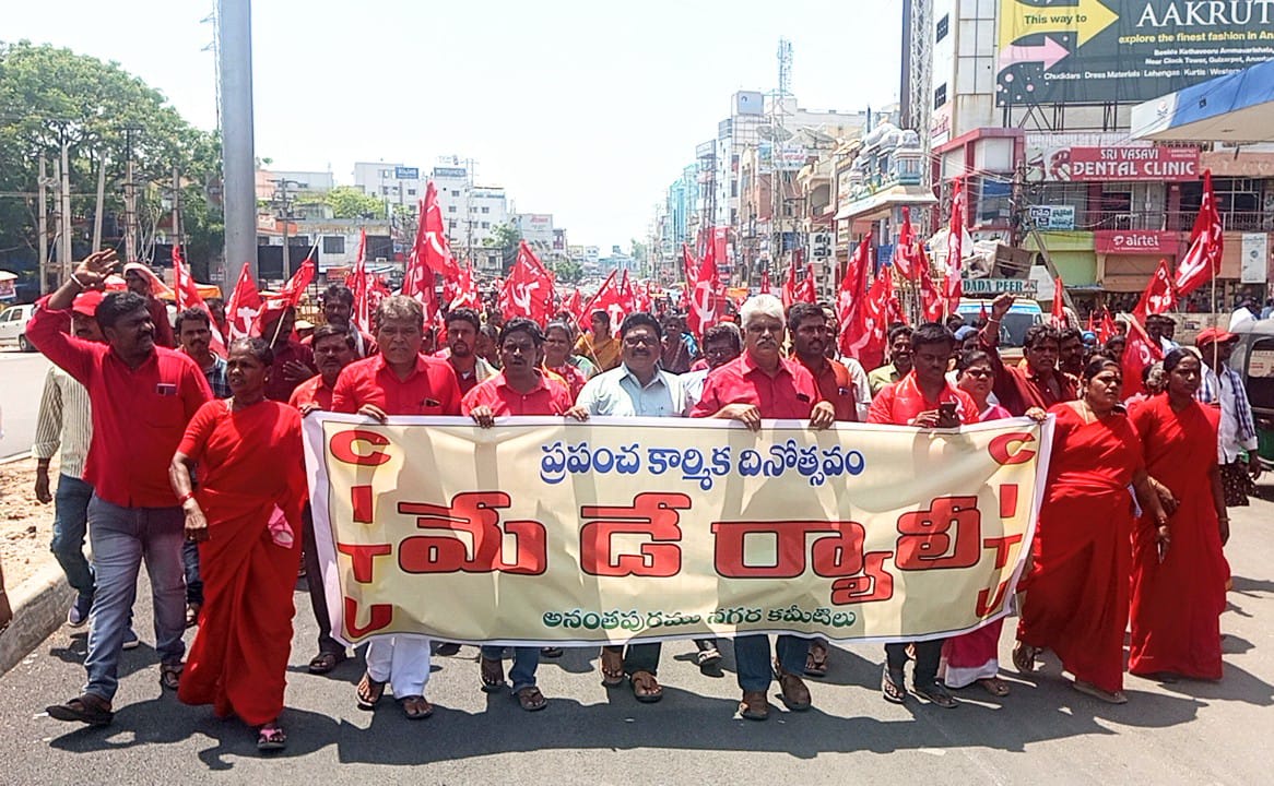 అనంతపురం కలెక్టరేట్ : కార్మికులు, కర్షకులు, శ్రామికుల హక్కుల పరిరక్షణ, సమస్యల పరిష్కారం కోసం రాబోవు రోజుల్లో ఐక్యంగా ఉద్యమిస్తామని సిఐటియు రాష్ట్ర అధ్యక్షులు ఎవి.నాగేశ్వరరావు అన్నారు. సోమవారం సిఐటియు ఆధ్వర్యంలో జిల్లా వ్యాప్తంగా మేడే వేడుకలు ఘనంగా నిర్వహించారు. నగరాలు, గ్రామాల్లో వాడవాడలా సిఐటియు జెండాలు ఎగురవేశారు. అనంతపురం నగరంలో భారీ ర్యాలీ నిర్వహించారు. మున్సిపల్ కార్యాలయం నుంచి సప్తగిరి సర్కిల్, టవర్క్లాక్ మీదుగా కృష్ణకళా మందిరం వరకు నిర్వహించారు. అనంతరం బహిరంగ సభ నిర్వహించారు. సిఐటియు నగర కార్యదర్శులు వెంకటనారాయణ, ముర్తుజా అధ్యక్షతన నిర్వహించిన బహిరంగ సభకు సిఐటియు రాష్ట్ర అధ్యక్షులు ఎవి.నాగేశ్వరరావు ముఖ్య అతిథులుగా హాజరై మాట్లాడారు. 8 గంటల పని దినం కోసం పోరాడి ప్రాణత్యాగం చేసిన వీరులను స్మరించుకుంటూ వారి ఆశయాలు, స్ఫూర్తితో రాబోయే రోజుల్లో కార్మికుల హక్కుల సాధన కోసం పోరాడుతామని దీక్షబూనే రోజు మేడే అన్నారు. కార్మికులు పోరాడి సాధించుకున్న కార్మిక సంరక్షణ చట్టాలను కేంద్రంలోని బిజెపి ప్రభుత్వం కాలరాస్తోందన్నారు. హక్కులు హరించేలా లేబర్కోడ్లు తీసుకొచ్చి కార్మికులను తిరిగి శ్రమ దోపిడీ, వెట్టి చాకిరీలోకి నెట్టేసే విధానాలు అనుసరిస్తున్నారని ధ్వజమెత్తారు. ప్రజల సొమ్ములతో ప్రారంభించిన ప్రభుత్వ రంగ సంస్థలను కారుచౌకగా అమ్మేస్తోందన్నారు. విశాఖ ఉక్కు పరిశ్రమను కూడా ప్రయివేటీకరిస్తోందన్నారు. రాజ్యాంగ హక్కులు, ప్రజా స్వామ్యం, కార్మికుల హక్కులపై మోదీ ప్రభుత్వం దాడి చేస్తోందని ఆగ్రహం వ్యక్తం చేశారు. బిజెపి ప్రభుత్వ విధానాలపై ప్రజలను చైతన్య పరిచి పోరాటాలకు శ్రీకారం చడుతున్నట్లు తెలిపారు. ఇప్పటికే అన్ని కార్మిక సంఘాల పోరాట కార్యచరణ రూపొందించాయని, ఆగస్ట్ ప్రచారాన్ని నిర్వహించి భవిష్యత్ పోరాటాలకు శ్రీకారం చుడుతున్నట్లు తెలిపారు. ప్రపంచ వ్యాప్తంగా అనేక దేశాల్లో పోరాటాలు సాగుతున్నాయని తెలిపారు. ఫ్రాన్స్, ఇటలీ, బ్రిటన్, అమెరికాలో ఉన్న హక్కులను నిలబెట్టుకోవడానికి పోరాటాలు చేస్తున్నారని ఇది అభినందనీయం అన్నారు. దేశంలో బిజెపి ప్రభుత్వం కార్మికులతో పాటు, రాష్ట్రానికి తీవ్ర అన్యాయం చేస్తోందన్నారు. బిజెపి రాష్ట్రానికి తీరని అన్యాయం చేస్తున్నా ముఖ్యమంత్రి వైఎస్.జగన్మోహన్రెడ్డిలు మాట్లాడని పరిస్థితి ఉందన్నారు. ప్రధాన ప్రతిపక్షాలు టిడిపి, జనసేన పార్టీలు కూడా మిన్నకుండి పోవడం నష్టమే అన్నారు. మోదీవైపు ఉంటారో, రాష్ట్ర అభివృద్ధి, సంక్షేమం వైపు నిలబడతారో వైఎస్ఆర్సిపి, టిడిపి, జనసేన పార్టీలు తేల్చుకోవాలని సూచించారు. ఈ సందర్భంగా సిఐటియు జిల్లా ప్రధాన కార్యదర్శి ఎస్.నాగేంద్రకుమార్ మాట్లాడుత