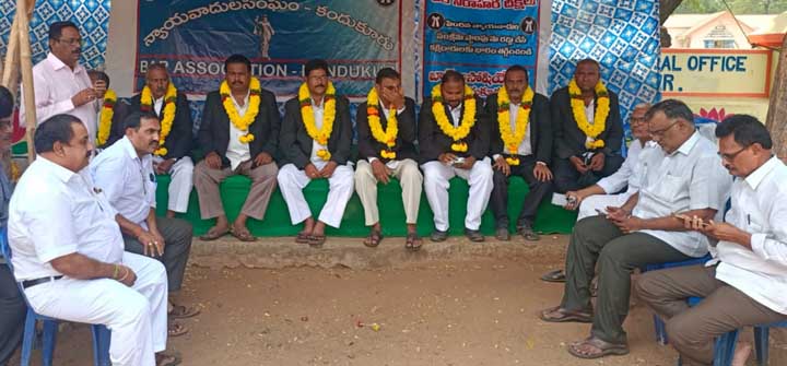 ప్రజాశక్తి-కందుకూరు : కింద స్థాయి బార్ అసోసియేషన్లను సంప్రదించ కుండా స్టేట్ బార్ అసోసియేషన్ ఏక పక్షంగా పెంచిన సంక్షేమ స్టాంప్లను రద్దుచేయాలని డిమాండ్ చేస్తూ, కక్షిదారులకు భారం తగ్గించాలని కోరుతూ కందుకూరు బార్ అసోసియేషన్ ఆధ్వర్యంలో జరుగుతున్న రిలే నిరాహారదీక్షలు మూడో రోజుకు చేరాయి. స్థానిక సబ్ కలెక్టర్ కార్యాలయం వద్ద ఏర్పాటు చేసిన దీక్షా శిబిరాన్ని ఉద్దేశించి బార్ అసోసియేషన్ అధ్యక్షుడు యం.మల్లిఖార్జున రావు మాట్లాడుతూ ఈ పెంపు వలన కక్షిదారులపై భారం పడుతుంది అని అన్నారు. సీనియర్ న్యాయవాది బెజవాడ కష్ణయ్య కొత్తూరి.హరి కోటేశ్వరరావు, పోకూరి కోటయ్య సి.హెచ్.హరి కష్ణా మామిడాల మాల్యాద్రి దీక్షలో పాల్గొన్న న్యాయవాదులకు పూలమాలలు వేసి శిబిరాన్ని ప్రారంభించారు. ఈరోజు దీక్షలో కె.మల్లిఖార్జునరావు, ముప్పవరపు కిషోర్ సి.హెచ్ నాగేంద్ర శర్మ, చెనికల.రమేష్, షేక్ మస్తాన్ వలీ, కరణం అరవింద్, పెట్లూరి మురళి, ఎ.వి.సుబరామయ్య, సి.హెచ్ రవీంద్ర ,సి.రాఘవేంద్రరావు పాల్గొన్నారు. న్యాయవాదుల దీక్షా శిబిరాన్ని సందర్శించి సంఘీభావం ప్రకటించిన వారిలో సీనియర్ న్యాయవాదులు పి.భాస్కర్ రావు, వలేటి శ్రీధర్ నాయుడు, బి.వి.మురళీకష్ణ, గౌడిపేరు కోటేశ్వరరావు,టి.అరుణ, బొందు రోశయ్య ,లింగాబత్తిన బ్రహ్మాయ్య ,చుండి మురళి, రాధాకష్ణ తదితరులు ఉన్నారు. న్యాయమైన డిమాండ్ పరిష్కారం అయ్యేవరకు ఉద్యమం ఉధతం చేస్తామని శిబిరాన్ని సమన్వయం చేసిన బార్ అసోసియేషన్ సెక్రటరీ యస్.పవన్ కుమార్ తెలిపారు.
