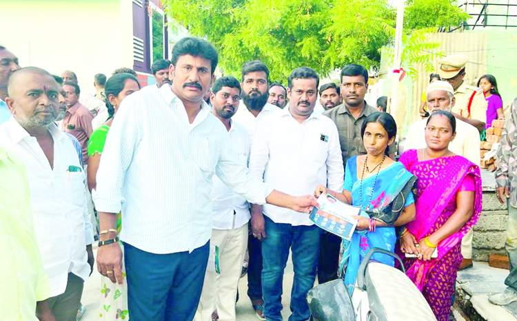 మహిళకు కరపత్రం అందజేస్తున్న ఎమ్మెల్యే తోపుదుర్తి ప్రకాష్రెడ్డి