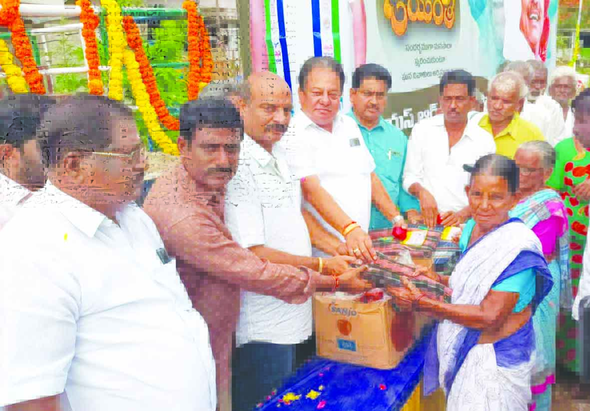 కాళ్ల : వైఎస్ఆర్ పేదల పెన్నిధి అని డిసిసిబి ఛైర్మన్, వైసిపి నియోజకవర్గ ఇన్ఛార్జి పివిఎల్.నర సింహరాజు అన్నారు. మండలంలోని పెదఅమిరం సీసలి, దొడ్డనపూడి, ప్రాతళ్లమెరక, కలవపూడి, ఏలూరుపాడు, జువ్వలపాలెం, కాళ్ల, కోపల్లె గ్రామాల్లో వైఎస్ఆర్ విగ్రహానికి, చిత్రపటానికి పూలమాలలు వేసి నివాళులర్పించారు. అనంతరం జెండాను ఆవిష్కరించి కేక్ కట్ చేసి కార్యకర్తలకు పంచిపెట్టారు. పేదలకు పండ్లు, దుస్తులు పంపిణీ చేశారు. ఈ కార్యక్రమంలో జెడ్పిటిసి సభ్యులు పచ్చిగోళ్ల సోమేశ్వరరావు, పెదఅమిరం గ్రామ సర్పంచి డొక్కు సోమేశ్వరరావు, ఎంపిపి శిరీష విశ్వనాథరాజు, కోపల్లె సొసైటీ అధ్యక్షులు వేగేశ్న జయ రామకృష్ణంరాజు, వైసిపి నాయకులు వేగేశ్న బాలగణపతి వర్మ, సత్యనారాయణ, రమేష్ పాల్గొన్నారు.