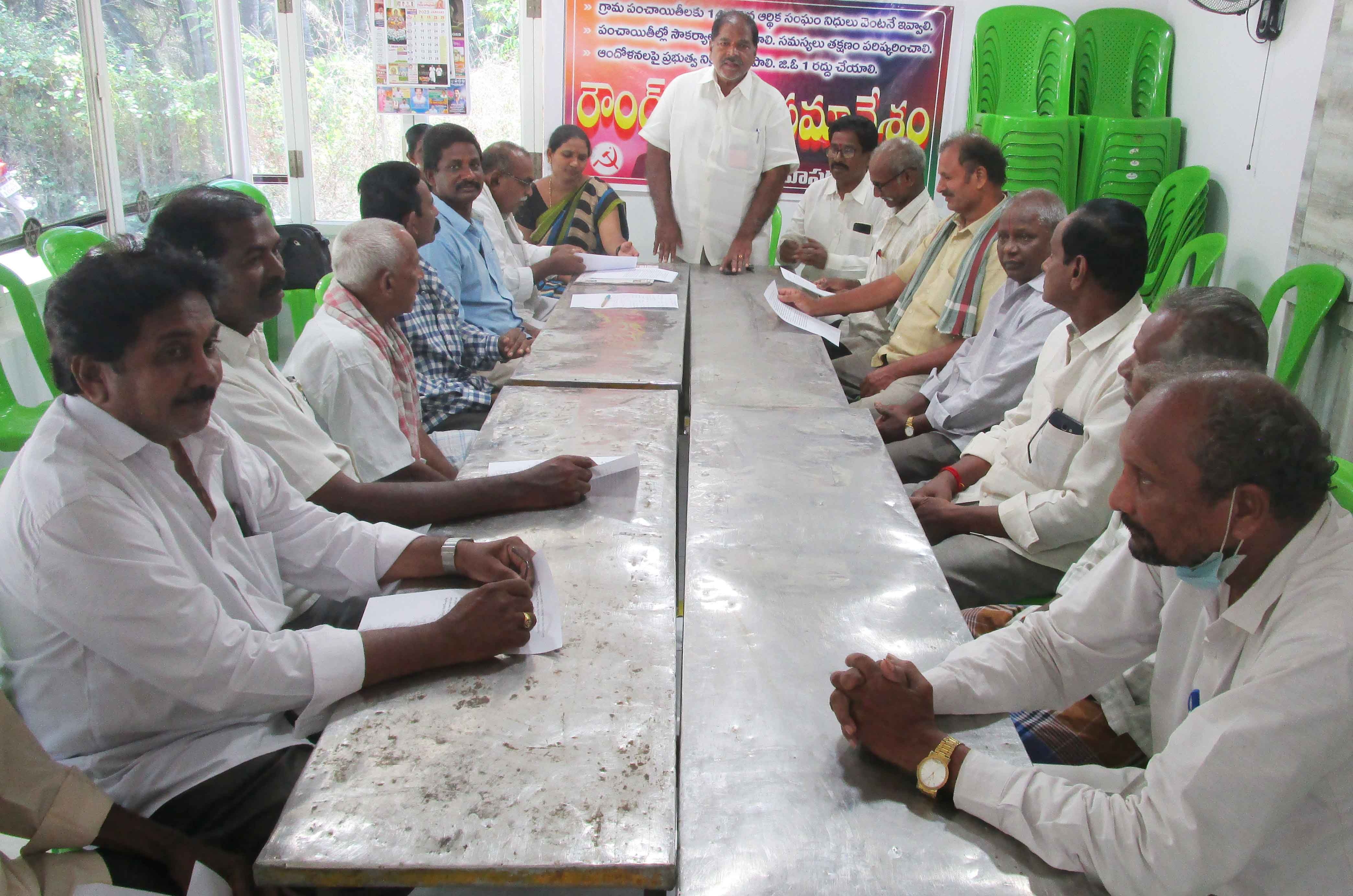 వీరవాసరం మండలంలో గ్రామ పంచాయతీలకు ఇవ్వాల్సిన 14, 15 ఆర్థిక సంఘం నిధులు వెంటనే ఇవ్వాలని లేని పక్షంలో రాష్ట్ర ప్రభుత్వంపై దశలవారీ పోరాటాం చేస్తామని అఖిలపక్ష రౌండ్ టేబుల్ సమావేశం హెచ్చరించింది. వీరవాసరంలో అఖిల పక్ష రౌండుటేబుల్ సమావేశం సిపిఎం నాయకులు జుత్తిగ నరసింహమూర్తి అధ్యక్షతన మంగళవారం నిర్వహించారు. పంచాయతీలో నిధులు లేక అధికార పక్ష సర్పంచులే చెప్పుతో కొట్టుకోవాల్సిన పరిస్థితులను రాష్ట్ర ప్రభుత్వం కల్పించిందన్నారు. స్థానిక సంస్థల అధికారాన్ని, నిధులను నిర్వీర్యం చేసే విధంగా ప్రభుత్వం ముందుకెళితే సహించేదిలేదని ఉద్యమాన్ని మరింత ముందుకు తీసుకెళ్తామని నాయకులు స్పష్టం చేశారు. పంచాయతీ నిధుల సమస్యపై సిపిఎం ఆధ్వర్యంలో ఈనెల 8న చేపట్టిన ఒక్క రోజు శాంతియుత దీక్షను ప్రభుత్వం పోలీసులతో భగం చేయించడాన్ని సమావేశం ఖండించింది. పంచాయతీ నిధులను రాష్ట్ర ప్రభుత్వం వాడుకోవడం వల్ల పంచాయతీలను కేంద్ర ప్రభుత్వం బ్లాక్లిస్టులో పెట్టడమే కాకుండా రాష్ట్ర ప్రభుత్వం ఐదో ఆర్థిక సంఘం ఏర్పాటు చేయకపోవడం వల్ల కేంద్ర ప్రభుత్వం ఈ సంవత్సరం ఆర్థిక సంఘం నిధులు ఇవ్వలేమని చెప్పటం బాధాకరమన్నారు. గ్రామ పంచాయతీల అభివృద్ధి కోసం రాష్ట్ర ప్రభుత్వం ఒక్క పైసా ఇవ్వకపోయినా, కేంద్ర ప్రభుత్వం ఇచ్చిన 14, 15వ ఆర్థిక సంఘం నిధులు వాడుకోవడాన్ని సర్పంచులు మానసికంగా ఇబ్బందులు పడుతున్నారన్నారు. తక్షణం రూ.7659 కోట్ల నిధులను పంచాయతీ ఖాతాల్లో జమచేయాలని సమావేశం డిమాండ్ చేసింది. పంచాయతీల్లో నిధుల్లేక ఏ పనీ చేయలేకపోతున్నామని, కనీసం శానిటేషన్, ముగ్గు చల్లించేందుకు డబ్బులు లేని పరిస్థితులున్నాయని పలువురు సర్పంచులు ఆవేదన వ్యక్తం చేశారు. తక్షణం ఆర్థిక సంఘం నిధులు పంచాయతీలకు జమ చేయాలని సమావేశం తీర్మానించింది. ఈ సమావేశంలో జనసేన మండలాధ్యక్షుడు గుండా రామకృష్ణ, టిడిపి మాజీ ఎంపిపి వీరవల్లి చంద్రశేఖర్, సర్పంచులు వేండ్ర లీలాకృష్ణ, యర్రంశెట్టి నాగసాయి, ఎంపిటిసిలు గోడి ఆదిలక్ష్మి, వాసాల వెంకటేశ్వరరావు, సిపిఎం నాయకులు రెడ్డి రామారావు, బొంతు రామారావు, గొట్టుముక్కల శ్యాంబాబు పాల్గొన్నారు.