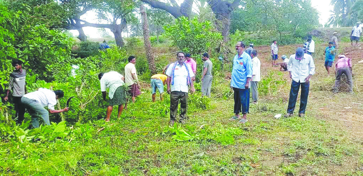 మండలంలోని సిద్ధాం తం రజక జనసేవ సంఘం వారు తమ కుల వృత్తి చేసుకునే చెరువుల చుట్టూ ఉన్న పిచ్చిమొక్కలు, ముళ్లకంపలను ఆదివారం శ్రమదానం చేసి శుభ్రం చేసుకున్నారు. సంఘ అధ్యక్షుడు దువ్వారపు వెంకట్రావు నాయకత్వంలో సుమారుగా 75 కుటుంబ సభ్యులు తమ సంఘ పరిధిలో ఉన్న రెండు చెరువుల చుట్టూ కులవృత్తులు చేసుకోవడానికి అణువుగా లేకుండా పెరిగిపోయిన ముళ్లకంపలు, మందుబాబులు తాగి పడేసిన బ్రాందీ బాటిల్స్ తీసివేయడానికి శ్రమదానం చేసుకుని, ఉతికిన బట్టలు ఆరేసుకోవడానికి, చెరువులో బట్టలు ఉతకటానికి బల్లలు ఏర్పాటు చేసుకున్నారు.