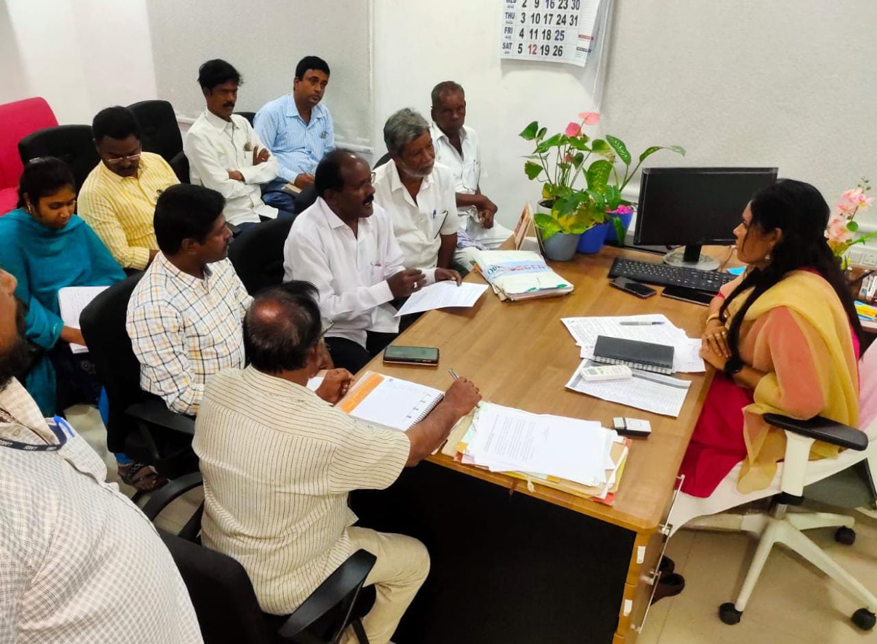 పారిశుధ్య కార్మికుల సమస్యలను కమిషనర్తో చర్చిస్తున్న యూనియన్ నాయకులు