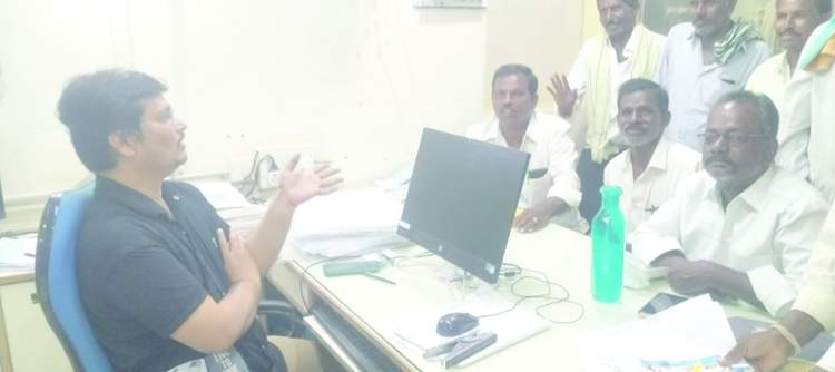 కెనరా బ్యాంకు మేనేజర్తో మాట్లాడుతున్నకౌలు రైతుసంఘం నాయకులు
