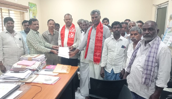ప్రజాశక్తి-పుట్లూరు : ఎస్సీ కార్పొరేషన్ ద్వారా కొని ఇచ్చిన భూములు అప్పగించాలని అనంతపురం జిల్లా ఎస్సీ కార్పొరేషన్ ఎగ్జిక్యూటివ్ డైరెక్టర్ కి పుట్లూరు మండల సిపిఐ కార్యదర్శి డి.పెద్దయ్య ఆధ్వర్యంలో దళితుల భూములు గురించి వినతి పత్రం ఇవ్వడం జరిగింది. ఈ కార్యక్రమానికి ముఖ్య అతిథులుగా సిపిఐ జిల్లా సహాయ కార్యదర్శి పి.నారాయణస్వామి నియోజవర్గ కార్యదర్శి T. నారాయణస్వామి పాల్గొని మాట్లాడుతూ పుట్లూరు మండలం అరకటవేముల గ్రామం నందు 1999 సంవత్సరంలో సంవత్సరములో ఎస్సీ కార్పొరేషన్ ద్వారా రాష్ట్ర ప్రభుత్వం అరకట వేముల గ్రామ రెవెన్యూ పొలం నందు 61 మంది భూములేని దళిత ల కు సూరేపల్లి గ్రామ రెవెన్యూ పొలం నందు పదిమంది కి భూమిలేని దళితులకు రైతుల వద్ద నుంచి ఎస్సీ కార్పొరేషన్ ద్వారా కొనుగోలు జరిపి భూమిలేని దళితులకు ఒక్కొక్కరికి రెండు ఎకరాల పై సిల్క్ భూములు రాష్ట్ర ప్రభుత్వం ఇచ్చినది. అప్పటినుంచి ఆ భూములను సాగు చేస్తే దళిత రైతులు జీవనం సాగిస్తున్నారు. ఈ భూములు స్వర్గీయ వైయస్ రాజశేఖర్ రెడ్డి ముఖ్యమంత్రి అయామ్ లో అప్పు రద్దు చేయబడినది. ఈ మధ్యకాలంలో ప్రభుత్వ రైల్వే అధికారులు ఎస్సీ కార్పొరేషన్ వారు ఇచ్చిన భూముల ను సర్వే చేయడం కూడా జరిగినది. కనుక ఈ భూముల ను దళిత రైతులకు మంజూరు చేసిన భూ రిజిస్టర్ పత్రాలను లబ్ధిదారులైన దళిత రైతులకు వెంటనే ఇవ్వాలని దళిత రైతుల తరపున సీపీఐ ద్వారా కోరుతున్నాం' అన్నారు. రైతు సంఘం నాయకులు పెద్ద కొండయ్య రైతులు వెంకటనారాయణ, చిన్న కొండయ్య,R. పెద్ద కొండయ్య, గురయ్య,రాజు, పెద్దయ్య, రామచంద్ర, శంకర ,చిన్నారయ్య, వెంకటేష్, బాల గురయ్య, బాల్ లక్ష్మయ్య ,సూరి, తదితరులు పాల్గొన్నారు.
