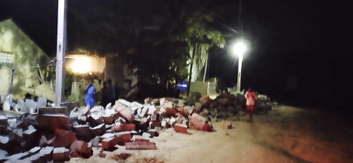 పౌల్ట్రీ ఫారం ప్రహరీని కూల్చి వేసిన దశ్యం