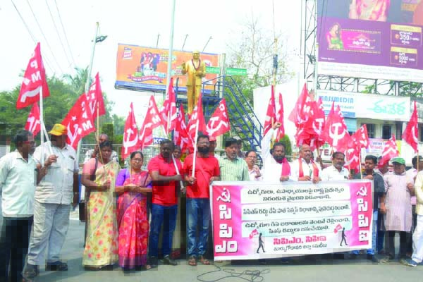 ప్రజాశక్తి- రాజమహేంద్రవరం ప్రతినిధి ఉద్యోగులు, ఉపాధ్యాయులను మోసం చేసిన వైసిపికి పాలించే అర్హత ఎక్కడదని సిపిఎం, సిపిఐ జిల్లా కార్యదర్శులు టి.అరుణ్, తాటిపాక మధు ప్రశ్నించారు. గురువారం రాజమండ్రి గోకవరం బస్ స్టాండ్ అంబేద్కర్ విగ్రహం వద్ద సిపిఎం, సిపిఐ జిల్లా కమిటీల ఆధ్వర్యంలో ఉద్యోగులు, ఉపాధ్యాయుల పట్ల రాష్ట్ర ప్రభుత్వ నిరంకుశ వైఖరిపై ధర్నా నిర్వహించారు. సిపిఎస్ విధానాన్ని రద్దు చేసి, పాత పెన్షన్ పునరుద్ధరించాలని, ఉద్యోగులు, ఉపాధ్యాయుల డిఎ బకాయిలు విడుదల చేయాలని, కాంట్రాక్టు ఔట్ సోర్సింగ్ ఉద్యోగులను రెగ్యులరైజ్ చేయాలని నినాదాలు చేశారు. ఈ సందర్భంగా సిపిఎం జిల్లా కార్యదర్శి టి.అరుణ్, సిపిఐ జిల్లా కార్యదర్శి తాటిపాక మధు మాట్లాడుతూ తాము అధికారంలోకి వస్తే వారం రోజుల్లో సిపిఎస్ రద్దు చేస్తానని జగన్ హామీ ఇచ్చారని, ఇప్పుడు మాట తప్పి ఇప్పుడు జిపిఎస్ అంటున్నారని విమర్శించారు. ఒక్కసారి కూడా డిఎస్సి పెట్టలేదని, 1998 బ్యాచ్ సమస్య కూడా పరిష్కారం కాలేదని, కాంట్రాక్టు ఉద్యోగులను రెగ్యులరైజ్ చేయకుండా, మభ్యపెట్టి, మైమరపించి మోసం చేస్తున్నారని అన్నారు. మాట తప్పం, మడమ తిప్పం అని చెప్పి మాట తప్పారని, మడమ తిప్పారని విమర్శించారు. రకరకాల యాప్ల పేరుతో టీచర్లపై తీవ్రస్థాయిలో ఒత్తిడి పెంచుతున్నారని, దీనివల్ల వారు ఒత్తిడికి లోనై చనిపోతున్నారని తెలిపారు. బాపట్ల జిల్లాలో జరిగిన తాజా ఘటన ప్రస్తావించారు. కరోనా కాలంలోనూ 35 మంది టీచర్లు ప్రాణాలు వదిలారని తెలిపారు. ఈ కాలంలో ఒత్తిడికి లోనై ఐదుగురు టీచర్లు బలయ్యారని చెప్పారు. బైజూస్కు సేవ చేయకపోతే విద్యాశాఖ కార్యదర్శి ప్రవీణ్ప్రకాష్ రంగంలోకి దిగుతారని, ఉపాధ్యాయులను నోటీసుల రూపంలో వేధిస్తూ, హింసిస్తున్నారని అన్నారు. ఉద్యోగులు దాచుకున్న పిఎఫ్ డబ్బు రూ.3 వేల కోట్లను వాడుకునేందుకూ ఉద్యోగులకు అవకాశం లేకుండా చేశారని, ప్రభుత్వమే దోచుకుందని విమర్శించారు. జీతాలూ సకాలంలో ఇవ్వడం లేదని పేర్కొన్నారు. ప్రైవేటు స్కూల్ టీచర్లకైతే అసలు భద్రతే లేదని పేర్కొన్నారు. ప్రైవేటు, కాంట్రాక్టు, ఔట్సోర్సింగ్ ఉద్యోగులకు సంక్షేమ చట్టం తేవాలని కోరారు. చిన్న స్కూళ్లపై వేధింపులు ఆపాలని డిమాండు చేశారు. ఎంఎల్సి ఎన్నికల్లో వైసిపి నేరుగా జోక్యం చేసుకుని గెలవాలని కిందిస్థాయి ప్రజాప్రతినిధులకు సిఎం స్థాయిలో ఆదేశాలు జారీ చేయడం దాని కోసం అడ్డదారులు తొక్కడం సిగ్గుచేటన్నారు. సిపిఎస్ రద్దు కోసం పోరాడుతున్న ఉద్యోగ, ఉపాధ్యాయులపై తీవ్ర నిర్బంధాన్ని, అణచివేతను ఉపయోగిస్తూ అరెస్టులు, షోకాజ్ నోటీసులతో నిరంతరం బెదిరింపులకు పాల్పడుతున్నారు. ఇప్పటికైనా రాష్ట్ర ప్రభుత్వం కక్ష సాధింపు ధోరణిని విడనాడి సిపిఎస్ రద్ద