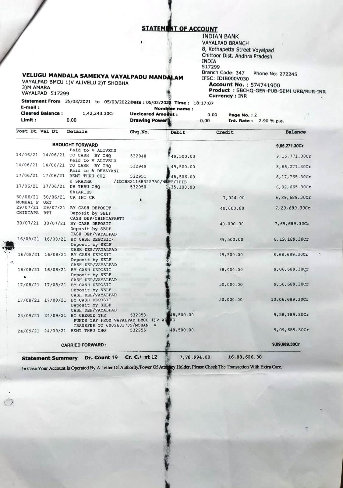 మండల సమాఖ్య కార్యాలయంలో ఆరుగురు కలసి రూ.13,25,323లు స్వాహా చేసినట్లు ఆధారాలతో సిఐటియు జిల్లా అధ్యక్షులు వాడ గంగరాజు వెలుగులోకి తీసుకొచ్చారు.