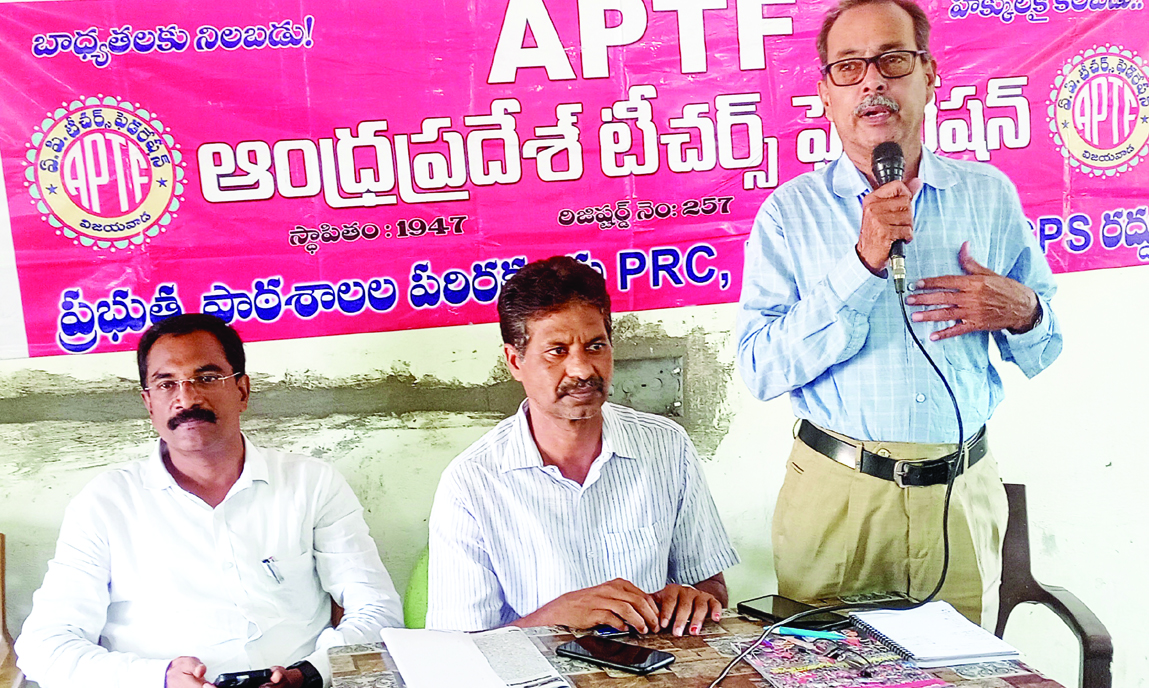 ప్రజాశక్తి - శ్రీకాకుళం అర్బన్ : ప్రభుత్వ విద్యారంగాన్ని కనుమరుగు చేసే 117, 84, 85 జిఒల రద్దుకు పోరాటాన్ని ఉధృతం చేస్తామని ఎపిటిఎఫ్ రాష్ట్ర ప్రధాన కార్యదర్శి కె.భానుమూర్తి ప్రభుత్వాన్ని హెచ్చరించారు. నగరంలోని పిఎస్ఎన్ఎం హైస్కూల్ ఆవరణలో ఆదివారం నిర్వహించిన జిల్లా కార్యవర్గ సమావేశంలో ఆయన మాట్లాడారు. ఉపాధ్యాయులకు బదిలీలు, ప్రమోషన్లు, రీఅపోర్షన్మెంట్ నిర్వహించిన విద్యాశాఖ 45 రోజులు గడుస్తున్నా, ఇంతవరకు వారికి జీతాలు ఇచ్చే ఏర్పాటు చేయలేదని విమర్శించారు. తక్షణమే జీతాలు చెల్లించాలని డిమాండ్ చేశారు. ఎంఇఒ-1, 2 పోస్టులను భర్తీ చేసిన ప్రభుత్వం, వారికి ఇంతవరకు పని విభజన చేయకుండా వదిలేసిందన్నారు. ఇద్దరు ఎంఇలకు సమాన పని విభజనతో పాటు సమాన గౌరవం ఉండే విధంగా చర్యలు తీసుకోవాలని కోరారు. జిల్లా అధ్యక్షులు మజ్జి మదన్మోహన్ మాట్లాడుతూ జిఒ నంబరు 60 విడుదల చేసి నెల రోజులు కావస్తున్నా, ఆ ఉత్తర్వుల్లో మంజూరు చేస్తున్నట్లుగా పేర్కొన్న 1452 స్కూల్ అసిస్టెంట్ పోస్టులను నేటికీ భరీ చేయలేదని విమర్శించారు. 117 జిఒ దుష్ఫలితాలను ఉపాధ్యాయ రంగం చవిచూస్తోందని, ఈ జిఒ రద్దుకు పోరాటాన్ని ఉధృతం చేయాలని పిలుపునిచ్చారు. సీనియర్ నాయకులు ఎస్.వి అనిల్ కుమార్ మాట్లాడుతూ ఈనెల నుంచి పిఆర్సి అమలు చేయాల్సి ఉన్నా, ప్రభుత్వం మధ్యంతర భృతి ప్రకటించకుండా తాత్సారం చేస్తోందన్నారు. సమావేశంలో సంఘ జిల్లా ఉపాధ్యక్షులు జి.భీమారావు, పి.అప్పలనాయుడు, కార్యదర్శులు చావలి శ్రీనివాస్, వెంకుమహంతి నవీన్ కుమార్, దాసరి రామ్మోహనరావు, రాష్ట్ర కౌన్సిలర్లు సదాశివుని శంకరరావు, పైడి శ్రీరామ్మూర్తి తదితరులు పాల్గొన్నారు.