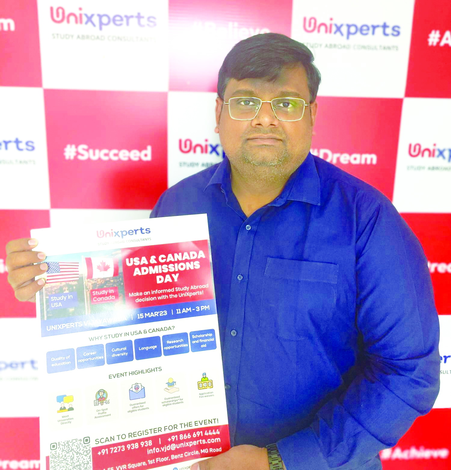 ప్రజాశక్తి-విజయవాడఅర్బన్: యూనిఎక్స్పర్ట్స్ ఆధ్వర్యంలో ఈ నెల 15వ తేదీ బుధవారం ఉదయం 11 గంటల నుండి మధ్యాహ్నం 3 గంటల వరకు యుయస్ఎ, కెనడా అడ్మిషన్స్ డే నిర్వహిస్తున్నట్లు యూనిఎక్స్పర్ట్స్ ఎపి ఆపరేషన్ హెడ్ చైతన్య వాడవల్లి పేర్కొన్నారు. ఈ సందర్భంగా ఆయన బ్రోచర్లను ఆవిష్కరించారు. ఆనంతరం ఆయన బందర్ రోడ్ బెంజిసర్కిల్ వద్ధ గల కార్యాలయంలో విలేకరులతో మాట్లాడుతూ యుయస్ఎ, కెనడాలో విద్యను అభ్యసించాలనుకునే విద్యార్థుల కోసం అడ్మిషన్స్ డే నిర్వహిస్తున్నట్లు ఆయన తెలిపారు. దీనిలో పది విశ్వవిద్యాలయాలు పాల్గొంటాయని తెలిపారు. నేరుగా వారితో మాట్లాడి అడ్మిషన్ పొంది స్కాలర్ షిప్ విధానాన్ని గురించి తెలుసుకొని స్పాట్ అడ్మిషన్ పొందేందుకు అవకాశం ఉందని పేర్కొన్నారు. అడ్మిషన్ డేలో పాల్గొనే విద్యార్థులు ఎటువంటి ఫీజు చెల్లించాల్సిన అవసరంలేదని, మరిన్ని వివరాల కోసం 8978787855 నెంబర్ను సంప్రదించాలని కోరారు.