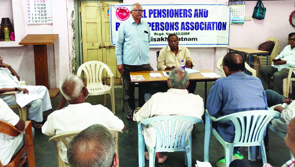 ప్రజాశక్తి -కంచరపాలెం : పెన్షనర్స్ డేను ఈ నెల 17వ తేదీన కూర్మన్నపాలెంలోని స్టీల్ప్లాంట్ దీక్షా శిబిరంలో చేపట్టాలని ఆల్ పెన్సనర్స్ అండ్ రిటైర్డ్ పెన్షనర్స్ అసోసియేషన్ నిర్ణయించింది. ఎన్ఎడి జంక్షన్ వద్ద గల హష్మీ భవన్లో అసోసియేషన్ జిల్లా సమావేశం సోమవారం బిటి.మూర్తి అధ్యక్షతన నిర్వహించారు. ఈ సందర్భంగా మూర్తి మాట్లాడుతూ, మల్కాపురంలో కూడా పెన్షనేర్ ''డే'' చేయాలని పిలుపునిచ్చారు. ఈ నెల 7,8 తేదీలలో ఢిల్లీ జంతర్ మంతర్ వద్ద చేపట్టిన ధర్నాలో పాల్గొన్న పెన్షనర్లందరికీ ధన్యవాదాలు తెలిపారు. రాష్ట్ర ప్రధాన కార్యదర్శి కె.సుధాకర్ మాట్లాడుతూ, జంతర్మంతర్ వద్ద జరిగిన సదస్సు, ధర్నా వివరాలను వివరించారు. వచ్చే ఏడాది మార్చి నెలలో చేపట్టే ధర్నాను కూడా జయప్రదం చేయాలని పిలుపునిచ్చారు. కనీస పెన్షన్ రూ.9,000 ఇవ్వాలని కోరుతూ కేంద్ర ప్రభుత్వంపై ఒత్తిడి చేసే కార్యక్రమాలను విజయవంతం చేయాలని కోరారు.