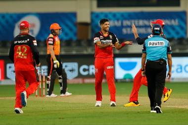 ఉమేశ్ యాదవ్ వేసిన రెండో ఓవర్ నాలుగో బంతికి డేవిడ్ వార్నర్ (6) అనుకోకుండా ఔటయ్యాడు. బెయిర్స్టో ఆడిన బంతికి ఉమేశ్ చేతిని అడ్డుపెట్టడంతో అది వికెట్లను తాకింది. అప్పటికే క్రీజులో బైట ఉన్న వార్నర్ రనౌట్గా వెనుతిరిగాడు. దీంతో హైదరాబాద్ 18 పరుగుల వద్ద తొలి వికెట్ కోల్పోయింది. అంతకుముందు బెయిర్స్టో ఒక ఫోర్, ఒక సిక్స్తో పాటు రెండు వైడ్లు రావడంతో ఈ ఓవర్లో మొత్తం 12 పరుగులు లభించాయి. డేల్ స్టెయిన్ వేసిన మూడో ఓవర్లో మనీష్ పాండే ఫోర్ కొట్టడంతో పాటు సింగిల్, డబుల్ రన్స్ వచ్చాయి. మూడు ఓవర్లు ముగిసే సరికి సన్ రైజర్స్ స్కోరు 25/1గా నమోదైంది. నవదీప్ షైనీ వేసిన నాలుగో ఓవర్లో కేవలం ఐదు పరుగులే వచ్చాయి. ఉమేశ్ యాదవ్ వేసిన ఐదో ఓవర్లో మనీష్ పాండే రెండు ఫోర్లు బాదాడు. మరో రెండు సింగిల్స్ రావడంతో ఆ ఓవర్లో 10 పరుగులు వచ్చాయి. నవదీప్ షైనీ వేసిన ఆరో ఓవర్ నాలుగో బంతిని బెయిర్స్టో ఫోర్గా మలచాడు. మరో నాలుగు సింగిల్స్తో మొత్తం ఆ ఓవర్లో 8 పరుగులు రాబట్టారు. పవర్ప్లే 6 ఓవర్లు ముగిసే సరికి సన్రైజర్స్ స్కోరు 48/1గా నమోదైంది. ఆర్సిబి పవర్ప్లేలో 53/0 పరుగులు రాబట్టింది. ప్రస్తుతం బెయిర్స్టో, మనీష్ పాండే క్రీజులో ఉన్నారు.