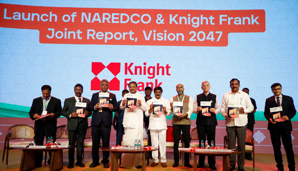 నారెడ్కో- నైట్ఫ్రాంక్ రిపోర్ట్ : హైదరాబాద్ : భారత రియాల్టీ రంగం 2047 నాటికి 5.83 ట్రిలియన్ డాలర్ల విలువకు చేరొచ్చని నైట్ ఫ్రాంక్, నేషనల్ రియల్ ఎస్టేట్ డెవలప్మెంట్ కౌన్సిల్ (నారెడ్కో) సంయుక్తంగా అంచనా వేశాయి. ఇది రూపాయి కరెన్సీలో రూ.480 లక్షల కోట్లకు సమానం. ప్రస్తుతం జిడిపిలో ఈ రంగం 7.3 శాతం వాటాను కలిగి ఉండగా.. 15.50 శాతానికి చేరొచ్చని అంచనా వేసింది. శనివారం హైదరాబాద్లో నైట్ఫ్రాంక్- నారెడ్కో రూపొందించిన విజన్ 2027 రిపోర్ట్ను భారత మాజీ ఉపరాష్ట్రపతి వెంకయ్యనాయుడు, నార్కెడ్కో ప్రెసిడెంట్ రాజన్ బందెల్కర్, నైట్ఫ్రాంక్ ఇండియా సీనియర్ ఎగ్జిక్యూటివ్ డైరెక్టర్ గులామ్ జియా, మంత్రి వేముల ప్రశాంత్ రెడ్డి ఆవిష్కరించారు. ఈ నివేదిక ప్రకారం.. రియల్ ఎస్టేట్ రంగంలో నివాస సెగ్మెంట్కు అధిక వాటా ఉంటుంది. 2047 నాటికి భారత ఆర్థిక వ్యవస్థ పరిమాణం 33-40 ట్రిలియన్ డాలర్ల మధ్య ఉండొచ్చని అంచనా. రాబోయే 25 సంవత్సరాలలో దేశంలో 23 కోట్ల ఇళ్ల అవసరముండొచ్చు. 2047 నాటికి భారత రియల్ ఎస్టేట్ మార్కెట్ విలువ 12 రెట్లు పెరగొచ్చు. ఆఫీస్ రియల్ ఎస్టేట్ మార్కెట్ విలువ 473 బిలియన్ డాలర్లకు పెరగనుంది. గతేడాది ఇది 40 బిలియన్ డాలర్లుగానే ఉంది.