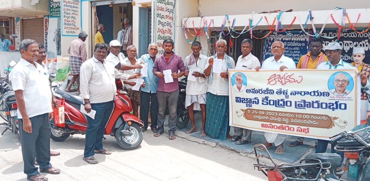 ప్రజాశక్తి - పెదనందిపాడు : తేళ్ల నారాయణ విజ్ఞాన కేంద్రాన్ని 25వ తేదీ ఉదయం 10 గంటలకు ప్రారంభించనునట్లు సిపిఎం గుంటూరు జిల్లా కార్యదర్శి పాశం రామారావు తెలిపారు. ప్రారంభోత్సవానికి ముఖ్యఅతిథిగా సిపిఎం పొలిట్బ్యూరో సభ్యులు, సుందరయ్య విజ్ఞాన కేంద్రం చైర్మన్ బివి రాఘవులు హాజరవుతారన్నారు. ఈ మేరకు కరపత్రాలను మండల కేంద్రమైన పెదనందిపాడులో గురువారం ఆవిష్కరించారు. అనంతరం నిర్వహించిన ప్రచారంలో రామారావు మాట్లాడుతూ పెదనందిపాడు మండలం పాలపర్రులో జన్మించిన నారాయణ అనేక ఉద్యమాలు, పోరాటాలలో పాల్గొన్నారని, ఆయన స్ఫూర్తిని కొనసాగించడానికి విజ్ఞాన కేంద్రాన్ని నిర్మించామని చెప్పారు. పెదనందిపాడు ప్రాంతంలో జాతీయ ఉద్యమంలో పర్వతనేని వీరయ్య చౌదరి నాయకత్వంలో పన్నుల నిరాకరణ ఉద్యమం పెద్ద ఎత్తున జరిగిందని, నల్లమడ రైతుల సమస్యలు, గుంటూరు ఛానల్ను పర్చూరు వరకు పొడిగింపు కోసం ఆందోళన ఇప్పటికీ కొనసాగుతున్నాయని తెలిపారు. ఈ నేపథ్యంలో ఈ ప్రాంతంలో అభ్యుదయ భావజాలాన్ని ప్రచారం చేయడానికి తేళ్ల నారాయణ పేరుతో అనేకమంది దాతల సహకారంతో పెదనందిపాడులోని లావువారివీధిలో విజ్ఞాన కేంద్రాన్ని నిర్మించామని తెలిపారు. విద్యార్థులకు పోటీ పరీక్షల శిక్షణ, మహిళలకు కుట్టు శిక్షణ, ట్యూషన్ పాయింట్ యువకులకు కంప్యూటర్ శిక్షణ, బాలల మనోవికాసానికి వివిధ కార్యక్రమాలు, చర్చగోస్టుల నిర్వహణకు ఈ కేంద్రం ఉపయోగపడుతుందని వివరించారు. ప్రారంభోత్సవానికి ప్రజలంతా పాల్గొని జయప్రదం చేయాలని పిలుపునిచ్చారు, సిపిఎం జిల్లా నాయకులు కె.నాగేశ్వరరావు మాట్లాడుతూ పెదనందిపాడులో జరిగే అన్ని వర్గాల ప్రజల సమస్యల పరిష్కారం కోసం జరిగే పోరాటాలకు ఈ విజ్ఞాన కేంద్రం కేంద్ర బిందువుగా ఉంటుందని అన్నారు. ప్రారంభోత్సవానికి ఎమ్మెల్సీ కెఎస్ లక్ష్మణరావు, విజ్ఞాన్ సంస్థల చైర్మన్ లావు రత్తయ్య, ఇతర ప్రముఖులు హాజరవుతారని అన్నారు. కార్యక్రమంలో సిపిఎం మండల కార్యదర్శి డి.రమేష్ బాబు, నాయకులు కె.శ్రీనివాసరావు, జె.రామారావు, కె.వెంకటశివరావు, కె.వెంకటసుబ్బారావు, కె.శివనాగేశ్వరరావు, సిహెచ్.యానాదులు, ఎం.రమణ, డి.శ్రీనివాసరావు, కె.బాబు పాల్గొన్నారు.