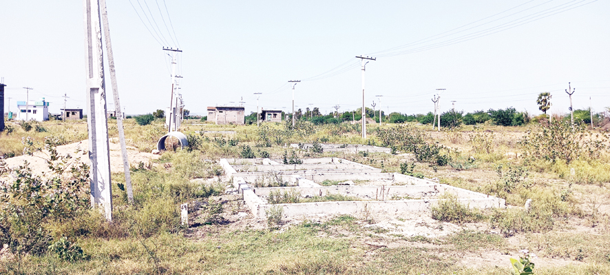 ఈ ప్లాట్లను పంపిణీ చేసి రెండేళ్లయినా ఇప్పటి వరకు ఒక్కటంటే ఒక్క ఇంటి నిర్మాణమే పూర్తయింది. ఒక ఇంటికి పునాది కోసం గుంతలు తీసి వదిలేశారు. ఏడు ఇళ్లు శ్లాబు దశలో ఉండగా మరో 23 ఇళ్లకు పునాదికి బీములు వేశారు. పట్టణానికి దూరంగా ఉండడం, బాగా పల్లపు ప్రాంతం కావడంతో ఇక్కడ ఇంటి నిర్మాణానికి వెనకాడుతున్నట్లు లబ్ధిదార్లు చెబుతున్నారు. ఈ ప్రదేశం చాలా పల్లంగా ఉంటుందని, మెరక తోలుకోవాలంటే చాలా ఖర్చవుతుందని చెబుతున్నారు. ప్రస్తుతం ప్రభుత్వం ఇస్తున్న రూ.1.8 లక్షలు ఇంటి నిర్మాణానికి ఏ మాత్రమూ సరిపోదని, రూ.5 లక్షల వరకూ ఖర్చవుతుందని అంటున్నారు.