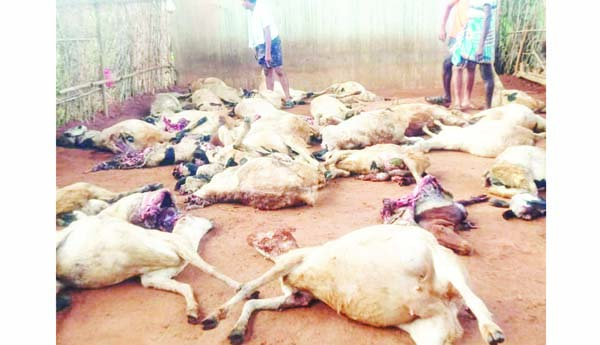 రైలు గుద్దేయడంతో మృతి చెందిన గొర్రెలు