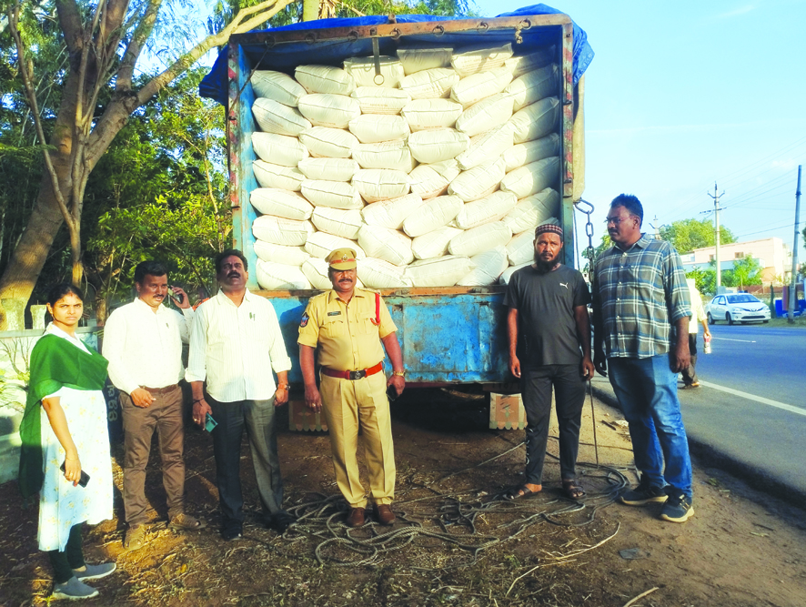 చేబ్రోలు: అక్రమంగా రవాణా చేయుచున్న 500 బస్తాల రేషన్ బియ్యం (పిడిఎస్) స్వాధీనం చేసుకున్నారు. గుంటూరు ప్రాంతీయ నిఘా అమలు అధికారి తెలిపిన వివరాల ప్రకారం ..పేద ప్రజలకు పంపిణీ చేయవలసిన రేషన్ బియ్యాన్ని సేకరించి, నకిలీ బిల్లులతో ఇతర రాష్ట్రములకు అక్రమంగా రవాణా చేయుచున్నారని గుంటూరు రీజనల్ విజిలెన్సు ఎన్ఫోర్స్ మెంట్ ఎస్.పి. కె. ఈశ్వర రావు కు అందిన విశ్వసనీయ సమాచారం మేరకు బుధవారం నాడు గుంటూరు విజిలెన్స్ అధికారులు, చేబ్రోలు మండలం నారాకోడూరు సెంటర్ వద్ద వాహనాలను తనిఖీ చేశారు. తెనాలి వైపు నుండి గుంటూరు వైపుకు లోడ్ తో వస్తున్న లారీ జిజడ్10టివి 8711 ని ఆపి తనిఖీ చేశారు. అందులో ఉన్న సరుకు కి సంబంధించి బిల్లులను పరిశీలించగా, నడింపలికి చెందిన లలితా ట్రేడర్ యజమాని కారుమూరు సత్యనారాయణకు చెందినవిగా గుర్తించారు. ప్లాస్టిక్ బస్తాలలో పిడిఎస్ బియ్యం చెరుకుపల్లి మండలం నుండి గుజరాత్ రాష్ట్రమునకు అక్రమ రవాణా చేస్తున్నట్లు గుర్తించారు. ఆ తర్వాత విజిలెన్సు అధికారులు చెరుకుపల్లి లో తనిఖీ నిర్వహించగా, ఎటువంటి లైసెన్స్ గానీ, వ్యాపార లావాదేవీలకు సంబందించిన రశీదులు కానీ, రికార్డు లు కానీ లేవు. కారుమూరు సత్యనారాయణ చెరుకుపల్లి, దాని చుట్టు పక్కల గ్రామాల నుండి సబ్సిడీ బియ్యం సేకరించి, నకిలీ బిల్లులతో అక్రమ రవాణా చేస్తున్నట్లు గుర్తించారు. లారీ లోని 500 ప్లాస్టిక్ బస్తాలలో ఉన్న 250 క్వింటాళ్ళ పిడిఎస్ బియ్యాన్ని స్వాధీనపరచుకుని, కారుమూరు సత్యనారాయణ పై 1955 నిత్యావసరాల చట్టం ప్రకారం 6(ఎ), క్రిమినల్ కేసులు నమోదు చేయాల్సిందిగా స్థానిక సి.ఎస్.డి.టి. ని విజిలెన్స్ అధికారులు ఆదేశించారు. తేని ఖీలలో విజిలెన్స్ ఇన్స్పెక్టర్ ఎ. శ్రీహరి రావు, తహశీల్దార్ కె. నాగమల్లేశ్వరరావు, స్థానిక రెవెన్యూ అధికారి,ఇతర సిబ్బంది పాల్గొన్నారు.