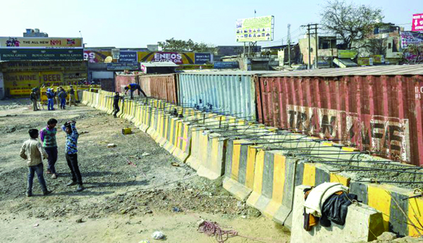 సింఘూ వద్ద తాత్కాలిక గోడ