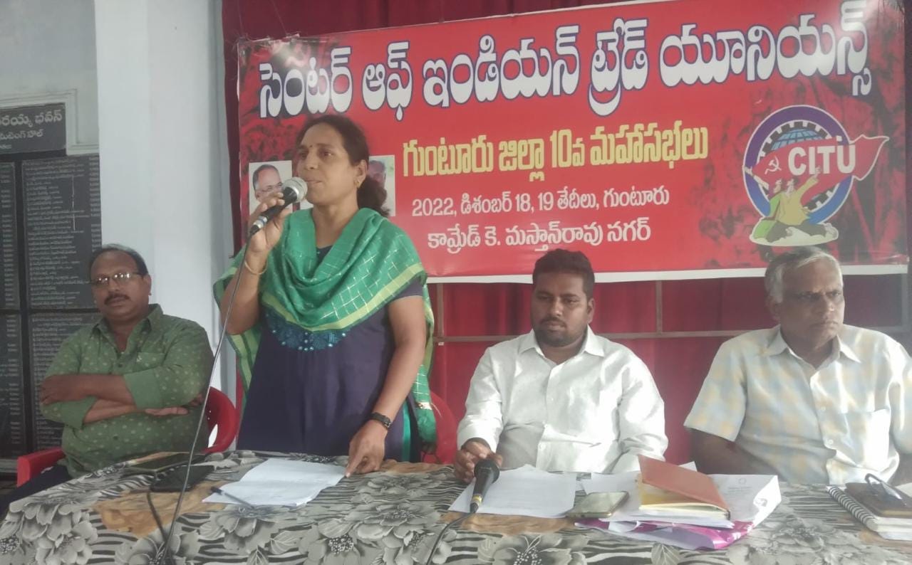 ప్రజాశక్తి-గుంటూరు : క్విట్ ఇండియా స్ఫూర్తితో కార్మికుల హక్కుల కోసం విజయవాడలో ఆగస్టు 9న జరిగే మహాధర్నాను, ఈనెల 25న పాతగుంటూరులోని సిఐటియు జిల్లా కార్యాలయంలో ఆలిండియా ట్రేడ్ యూనియన్స్ ఆధ్వర్యంలో జరిగే జిల్లా సదస్సును విజయవంతం చేయాలని సిఐటియు నాయకులు పిలుపునిచ్చారు. ఈ మేరకు సిఐటియు జిల్లా కార్యాలయంలో జిల్లా కార్యదర్శి బి.లక్ష్మణరావు అధ్యక్షతన ఆదివారం సమావేశం నిర్వహించారు. సిఐటియు రాష్ట్ర కార్యదర్శి డి.రమాదేవి మాట్లాడుతూ బిజెపి 9 ఏళ్ల పాలనాకాలంలో కార్మికవర్గంపై తీవ్రమైన దాడి చేస్తుందన్నారు. లేబర్ కోడ్ తీసుకురావటం ద్వారా కార్మికులు కనీసం యూనియన్ పెట్టుకునే హక్కును కోల్పాతారన్నారు. ప్రభుత్వ రంగం మొత్తం ప్రైవేటీకరణ చేస్తూ కేంద్ర, రాష్ట్ర ప్రభుత్వాలు అంబానీ, అదానీ సేవలో ఉంటూ కార్మిక హక్కులు కాలరాస్తూ తీవ్రదాడి చేస్తోందన్నారు. కార్మిక వర్గాన్ని దోపిడీ చేస్తున్నారన్నారు. ఈ విధానాలు ఇలాగే కొనసాగితే భవిష్యత్తులో కేంద్ర కార్మిక సంఘాలన్నీ పెద్ద ఎత్తున ఆందోళన చేస్తామని హెచ్చరించారు. ఈ విధానాలు విరమించుకోవాలని లేకపోతే జరుగు పరిణామాలకు ప్రభుత్వమే బాధ్యత వహించాల్సి వస్తుందని అన్నారు. సమావేశంలో సిఐటియు రాష్ట్ర కార్యదర్శి ముజఫర్ అహ్మద్, జిల్లా ప్రధాన కార్యదర్శి వై.నేతాజీ, నాయకులు ఎం.సాంబశివరావు, బి.ముత్యాలరావు, ఎన్.శివాజీ, వి.దుర్గారావు, షేక్.హుస్సేన్వలి, ఎన్.రమాసుష్మ, ఎం.భాగ్యరాజ్, ఎన్.రమేష్, టి.రాధ, వెంగమ్మ, బి.సత్యనారాయణ, ఎస్ఎం.వలి, బాషా, నాగరాజు, ఎం.రవి పాల్గొన్నారు.