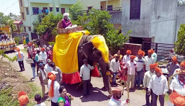మహారాష్ట్ర : ఓ కుటుంబం లేకలేక ఆడపిల్ల పుట్టిందని ఆ పాపను ఏనుగుపై ఊరేగిస్తూ ఇంటికి తీసుకువెళ్లారు. ఈ ఘటన మహారాష్ట్రలోని కొల్హాపూర్ జిల్లా పచ్గావ్లో జరిగింది. గ్రామానికి చెందిన గిరీశ్ పాటిల్కు ఐదు నెలల క్రితం పాప పుట్టింది. ఆ వంశంలో అమ్మాయి పుట్టడం 35 ఏళ్ల తర్వాత ఇదే తొలిసారి. పాపకు 'ఐరా' అని పేరు పెట్టారు. చిన్నారిని నిన్న ఇంటికి తీసుకురాగా దానిని ఎప్పటికీ గుర్తుండిపోయే మధురానుభూతిగా మార్చుకున్నారు. ఐరాను ఏనుగుపై ఊరేగిస్తూ డబ్బు వాయిద్యాల మధ్య గిరీశ్ తన ఇంటికి తీసుకెళ్లాడు. ఈ వేడుకను తిలకించేందుకు ఊరు ఊరంతా వచ్చింది.