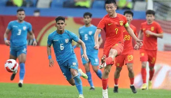 హాంగ్జూ(చైనా): ఆసియా క్రీడల ఆరంభ పోరులో భారత పురుషుల ఫుట్బాల్ జట్టు ఓటమిపాలైంది. గ్రూప్-ఎలో భాగంగా మంగళవారం జరిగిన ఫుట్బాల్ పోటీల్లో భారత్ 1-5 గోల్స్ తేడాతో ఆతిథ్య చైనా చేతిలో పరాజయాన్ని చవిచూసింది. మ్యాచ్ అరంభం నుంచే చైనా ఆటగాళ్లు దూకుడుగా ఆడారు. తొలి అర్థ భాగంలో చైనా జట్టు 1-0 ఆధిక్యతలో నిలిచింది. ఆ తర్వాత భారత ఆటగాడు రాహుల్ కేపీ గోల్ చేయడంతో స్కోర్ 1-1గోల్స్తో సమమైంది. అయితే.. రెండో అర్థ భాగంలో చైనా జట్టు చెలరేగి ఆడింది.ఉన్న భారత్, చైనా ఈరోజు తలపడ్డాయి. తొలి అర్థ భాగంలో స్కోర్ సమం కావడంతో మ్యాచ్ ఆసక్తికరంగా మారింది. రెండో అర్ధభాగంలో చైనా ఆటగాళ్లు ఏకంగా నాలుగు గోల్స్ చేశారు. టావో, హావో ఫాంగ్ రెండేసి గోల్స్తో జట్టుకు విజయాన్నందించారు. సొంత గడ్డపై వరుసగా మూడు ట్రోఫీల్లో చాంపియన్గా నిలిచిన టీమిండియా ఇది ఊహించిని షాక్.