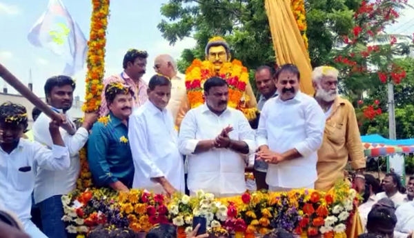 ప్రజాశక్తి-తెనాలి (గుంటూరు జిల్లా) : సూపర్ స్టార్ కృష్ణ కాంస్య విగ్రహాన్ని ఆయన సొంతూరు గుంటూరు జిల్లా తెనాలి మండలం బుర్రిపాలెంలో గ్రామస్తులు, అభిమానులు నెలకొల్పారు. ఎంతో ఆర్భాటంగా వారు ఏర్పాటు చేసిన ఈ విగ్రహాన్ని కృష్ణ సోదరుడు ఘట్టమనేని ఆదిశేషగిరిరావు శనివారం ఆవిష్కరించారు. మంత్రి డాక్టర్ మేరుగ నాగార్జున, శాసన సభ్యులు శివకుమార్, జనసేన పిఎసి చైర్మన్ నాదెండ్ల మనోహర్, మాజీ మంత్రి ఆలపాటి రాజేంద్రప్రసాద్, దర్శకులు ఎస్వి కృష్ణారెడ్డి, మహిళా కమిషన్ మాజీ చైర్పర్సన్ నన్నపనేని రాజకుమారి, దర్శకులు ఎస్వి కృష్ణారెడ్డి, నటులు సుధీర్ కుమార్, కష్ణ కుమార్తె మంజుల తదితరులు కృష్ణ విగ్రహానికి నివాళులర్పించారు. ఈ సందర్భంగా జూనియర్ ఆర్టిస్టులు మహేష్బాబును అనుకరిస్తూ సందడి చేశారు. అనంతరం ఆదిశేషగిరిరావు మాట్లాడుతూ బుర్రిపాలెం పేరు చెప్పకుండా కష్ణ మాట్లాడేవారు కాదని, గ్రామం అంటే ఆయనకి అమితాభిమానం అన్నారు. గ్రామ అభివృద్ధికి ఆయన ఎంతో కషి చేశారని, ఆయన జ్ఞాపకంగా గ్రామంలో ప్రతి సమస్యను గుర్తించి పరిష్కరిస్తామని తెలిపారు. తెలుగు సినిమా రంగంలో కష్ణ పాత్ర చెరగదని అన్నారు. ఎమ్మెల్యే శివకుమార్ మాట్లాడుతూ బుర్రిపాలెం పేరు ప్రపంచ స్థాయి గుర్తింపునకు కష్ణ కారణమయ్యారని ప్రశంసించారు. నాదెండ్ల మనోహర్ మాట్లాడుతూ హీరో కష్ణ సినీ రంగంలో ఎదిగిన తీరు, ఆయన రాజకీయ జీవితం కూడా ప్రశంసనీయమన్నారు. మాజీ మంత్రి ఆలపాటి రాజేంద్రప్రసాద్ మాట్లాడుతూ ఎంత ఎదిగిన ఒదిగి ఉండే స్వభావం నటుడు కష్ణకే సొంతమని పేరొకన్నారు. నన్నపనని రాజకుమారి మాట్లాడుతూ స్వగ్రామంపై ప్రత్యేకమైన అభిమానాన్ని చాటుకున్న నటులలో కష్ణ ఒకరని తెలిపారు. దర్శకులు, నిర్మాత ఎస్వి కష్ణారెడ్డి మాట్లాడుతూ కష్ణతో ఎన్నో చిత్రాలు నిర్మించానని అన్నారు. ఈ సందర్భంగా కష్ణ జీవిత విశేషాలపై సీనియర్ పాత్రికేయులు వినాయకరావు రచించిన దేవుడు లాంటి మనిషి గ్రంథాన్ని ఆవిష్కరించారు.