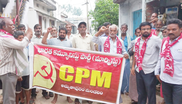 విశాఖ : బిజెపి ప్రభుత్వ విధానాలపై పోరాటానికి సన్నద్ధం కావాలని సిపిఎం జిల్లా కార్యదర్శివర్గ సభ్యుడు జి.కోటేశ్వరరావు పిలుపునిచ్చారు. బిజెపి ప్రభుత్వం ఆంధ్ర రాష్ట్రానికి తీరం ద్రోహం చేసిందని, విభజన హామీలను అమలు చేయడంలో ఘోరంగా విఫలమైందని సిపిఎం జిల్లా కార్యదర్శి వర్గ సభ్యుడు జి.కోటేశ్వరరావు విమర్శించారు. బుధవారం తిమ్మరాజుపేటలో బిజెపి ప్రభుత్వ ప్రజా వ్యతిరేక విధానాలపై ప్రచార కార్యక్రమంలోపాల్గని ప్రసంగించారు.