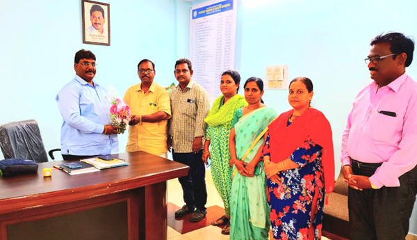 ప్రజాశక్తి-కాకినాడ : కాకినాడ జిల్లా నూతన జిల్లా వైద్యరోగ్యాధికారి డా.జె.నరసింహ నాయక్ని మర్యాద పూర్వకముగా యునైటెడ్ మెడికల్ అండ్ హెల్త్ ఎంప్లాయిస్ యూనియన్ జిల్లా నాయకులు కలసి శుభాకాంక్షలు తెలియాజేశారు. ఈ సందర్బంగా డిఎం అండ్ హెచ్ఒ నాయక్ గ్రామ, వార్డు సచివాలయం ఉద్యగుల కొన్ని అపరిష్కృత సమస్యలను వారి దృష్టికి తీసుకొని వెళ్లగా వారు సానుకూలంగా స్పందించి సాధ్యమైంత త్వరిత్తగతిన పరిష్కరిస్తానని హామీ ఇచ్చారు. ఈ కార్యక్రమంలో జిల్లా అధ్యక్షుడు డి.ఎ.రతన్ రాజ్, ప్రధాన కార్యదర్శి చీకట్ల శ్రీనివాస్, వైస్.ప్రసిడెంట్ రాధకృష్ణ, ఇబ్రహీం, గ్రామ, వార్డు సచివాలయం ఉద్యోగుల రాష్ట్ర కార్యదర్శి ప్రభారాణి, జిల్లా అధ్యక్ష కార్యదర్శులు నీరజ, నాగ వరలక్ష్మి తదితరులు పాల్గొన్నారు.