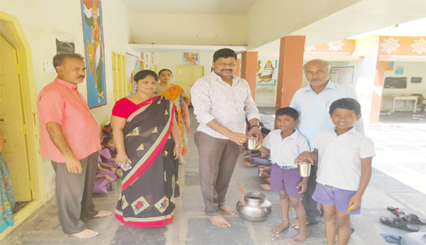 ప్రజాశక్తి-కారంచేడు (బాపట్ల) : రాష్ట్ర ప్రభుత్వం ప్రతిష్టాత్మకంగా పాఠశాల పిల్లలకు మంగళవారం నాడు ప్రవేశపెట్టిన రాగి చావ కార్యక్రమాన్ని మండలంలోని దగ్గుబాడు గ్రామపంచాయతీలో పాఠశాలలో మంగళవారం ప్రారంభించారు. గ్రామంలోని ఉర్దూ పాఠశాల మండల పరిషత్తు ప్రాథమిక పాఠశాలలో దగ్గుబాడు గ్రామపంచాయతీ సర్పంచి గ్యార రవీంద్రనాథ్ ఠాగూర్, కార్యదర్శి జోష్ణలు కలిసి విద్యార్థిని విద్యార్థులకు రాగి జావను పంపిణీ చేశారు. ఈ కార్యక్రమంలో దగ్గుబాటు ఎంపీపీ మెయిన్ పాఠశాల హెచ్ఎం భవనం శ్రీనివాస్ రెడ్డి, మండల పరిషత్ పాఠశాల హెచ్ఎం మల్లికార్జున, ఉర్దూ పాఠశాల హెచ్ఎం వాసు , ఉపాధ్యాయులు పుష్పలత, నిర్మల, తదితరులు ఉన్నారు.