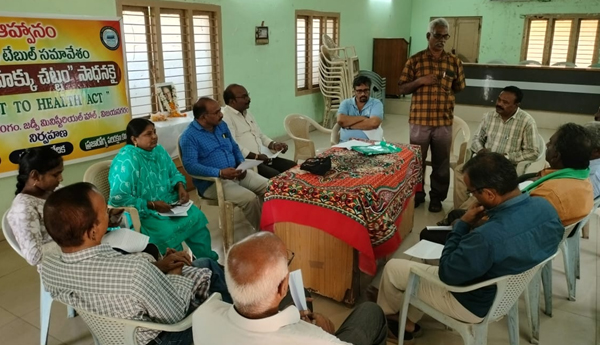 ప్రజాశక్తి-విజయనగరం టౌన్ : ప్రపంచీకరణ నేపథ్యంలో ప్రజల ఆరోగ్య భద్రత నేడు ప్రమాదంలో పడింది. వాస్తవానికి ఏదేశ అభివృద్ధి అయినా ఆ దేశ పౌరుల ఆరోగ్యం మీద ఆధార పడి ఉంటుందని అనేక అధ్యయనాలు తేల్చి చెప్పాయి. కాబట్టి రాష్ట్ర అభివృద్ధికి తమ ప్రభుత్వం కట్టుబడి ఉందని చెబుతున్న రాష్ట్ర ప్రభుత్వం ప్రజల ఆరోగ్య పరిరక్షణ కోసం కచ్చితంగా ఆరోగ్య హక్కు చట్టం చేయాలని ప్రజారోగ్య వేదిక రాష్ట్ర కన్వీనర్ టి. కామేశ్వరరావు డిమాండ్ చేశారు.. ఆదివారం స్థానిక జిల్లా పరిషత్ మినిస్టీరియల్ హాల్ లో జనవిజ్ఞాన వేదిక , ప్రజారోగ్య వేదిక , ప్రజారోగ్య పరిరక్షణ కమిటీ సంయుక్త నిర్వహణలో జరిగిన రౌండ్ టేబుల్ సమావేశానికి ప్రధాన వక్తగా పాల్గొని మాట్లాడారు. 1948 లో ప్రకటించబడిన మానవ హక్కుల చార్టర్ (యునివర్సల్ డిక్లరేషన్)ఆరోగ్యం అనేది మనిషి ఒక గౌరవప్రదమైన జీవితం జీవించే హక్కులో ఒక భాగం అని పేర్కొనబడిందని అన్నారు. 1966 లో జరిగిన అంతర్జాతీయ ఒప్పందం ఆరోగ్యం అనేది పౌరుల ప్రాధమిక హక్కు గా గుర్తించిందని గుర్తుచేసారు. భారత రాజ్యాంగం లో ఆర్టికల్ 21 అనేది పౌరునికి జీవించే హక్కుని కల్పించడమే కాకుండా జీవించడం అంటే కేవలం ఏదో విధంగా జీవించడం కాదని ఆరోగ్యవంతమైన గౌరవప్రదమైన జీవితం గా వుండాలని రాజ్యాంగం నిర్దేసించిదని, కాబట్టి రాజ్యాంగం లోని ఆదేశిక సూత్రాల ఆదేశానుసారం దేశ పౌరుల ఆరోగ్య భద్రతకు ప్రభుత్వాలు బాధ్యత తీసుకోవాలని , అందుకు అనుగుణంగా తగు చర్యలను తీసుకోవాలని ఆయన సూచించారు ఈ సమావేశంలో వివిధ ప్రజాసంఘాల నాయకులు పాల్గొని ప్రజల ఆరోగ్య హక్కు సాధన కోసం జరిగే భవిష్యత్తు కార్యాచరణకు మద్దతు ప్రకటించారు జనవిజ్ఞాన వేదిక జిల్లా అధ్యక్షులు ఎం వి ఎన్ వెంకట్రావు అధ్యక్షతన జరిగిన ఈ రౌండ్ టేబుల్ సమావేశంలో ఎపిఎన్జీఓ అసోసియేషన్ జిల్లా అధ్యక్షుడు జె.మురళి , యునైటెడ్ మెడికల్ అండ్ హెల్త్ ఎంప్లాయిస్ యూనియన్ జిల్లా ప్రధాన కార్యదర్శి జివిఎస్ఎన్ మూర్తి, ఎస్టీయు జిల్లా అధ్యక్షులు శ్యామ్ , ఆశా వర్కర్స్ యూనియన్ నాయకులు సుధారాణి , రైతు సంఘం జిల్లా కార్యదర్శి బి.రాంబాబు , ప్రజారోగ్య వేదిక జిల్లా కన్వీనర్ ఎస్ లక్ష్మణరావు , మెడికల్ రిప్రజంటేటివ్స్ యూనియన్ నాయకులు సూర్యభగవాన్ జర్నలిస్ట్స్ యూనియన్ జిల్లా అధ్యక్షులు రమేష్ నాయుడు , సమతా రాష్ట్ర కన్వీనర్ జి. నిర్మల, జనవిజ్ఞాన వేదిక జిల్లా నాయకులు కె. మురళీబాబు తదితర ప్రజా సంఘాల ప్రతినిధులు పాల్గొన్నారు. జనవిజ్ఞాన వేదిక జిల్లా ప్రధాన కార్యదర్శి పి రమణప్రభాత్ ఆరోగ్య హక్కు చట్టం ఆవస్యకత పై తీర్మానం ప్రవేశపెట్టి భవిష్యత్తు కార్యాచరణ ప్రవేశపెట్టగా ప్రజా సంఘాల ప్రతినిధులు దానిని ఏకగ్రీవంగా ఆమోదించారు.